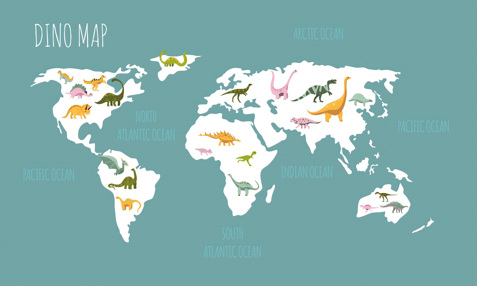 Affiche personnalisée Mappemonde Dinosaures – Créez une décoration unique à votre image