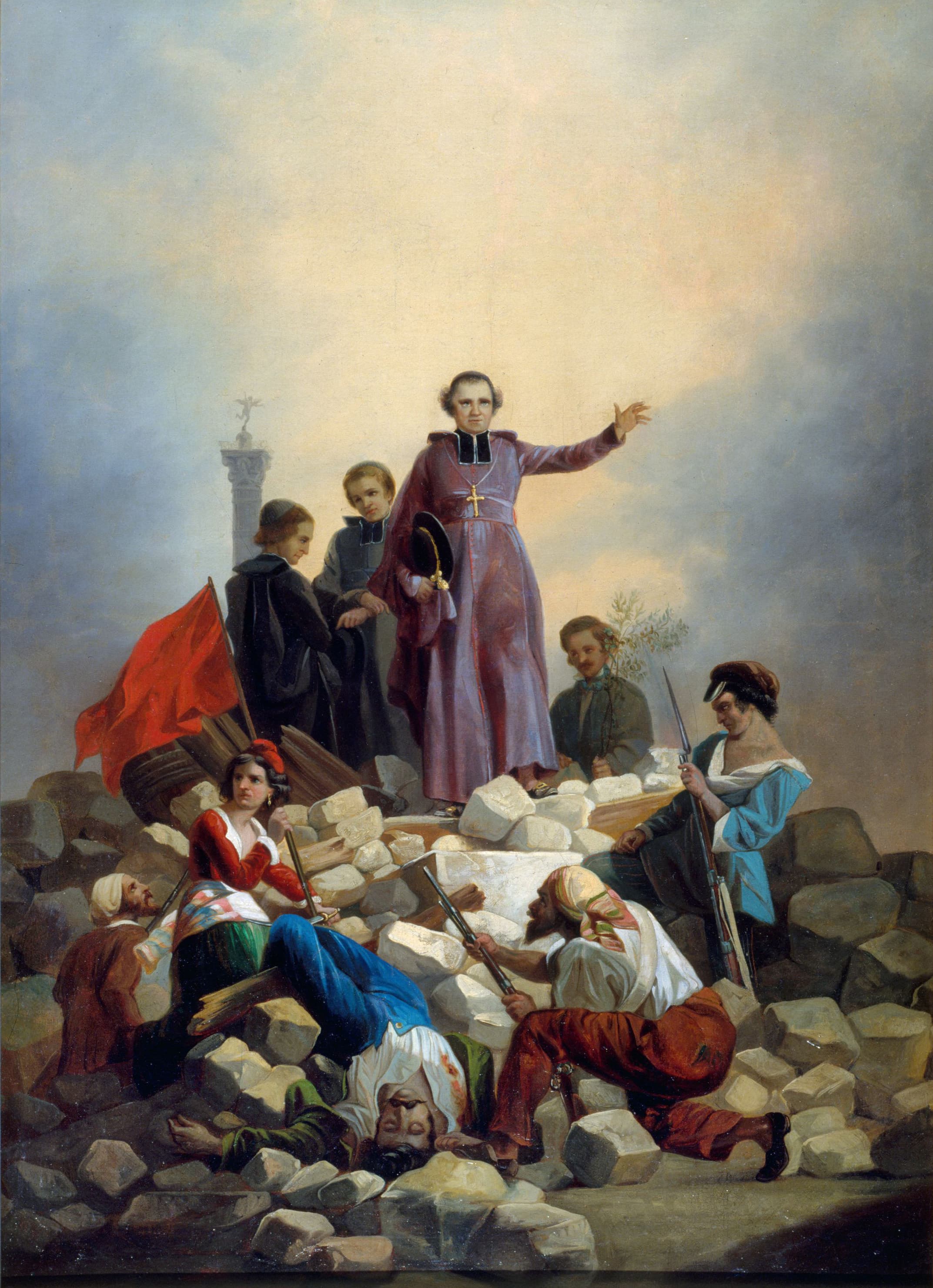 Notre Affiche personnalisée Peinture 19e siècle Joseph Félon - Monseigneur Affre sur la barricade associe qualité d’image, durabilité et esthétisme. Imprimée sur papier photo satiné 275 g/m², elle offre un rendu professionnel et des couleurs éclatantes. Commandez en ligne, recevez rapidement votre création, et transformez vos murs en galerie d’art moderne.