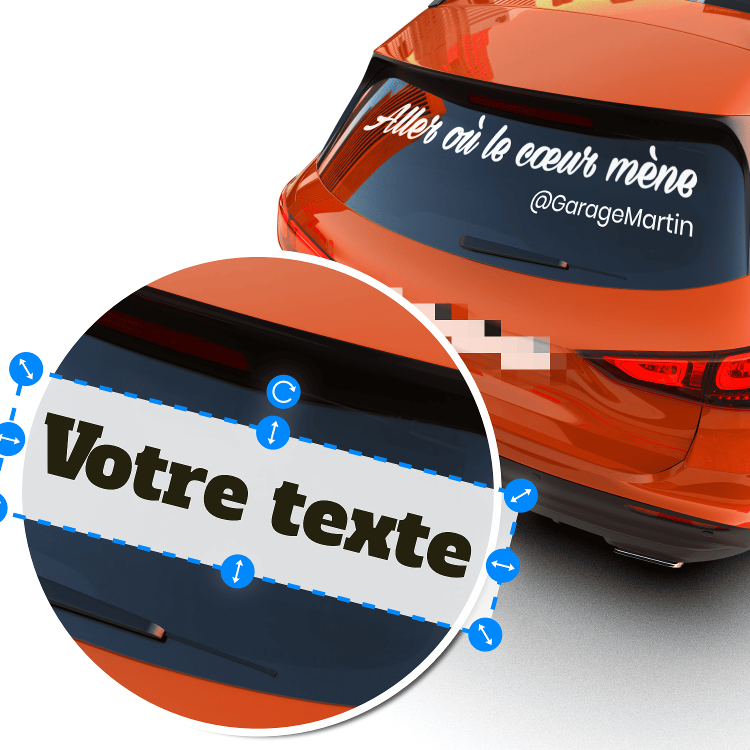 Ajoutez une touche unique à votre véhicule avec un lettrage adhésif pour vitres et pare-brise. Prénom, pseudo, slogan, club auto, réseau social ou message fun : créez un sticker sur mesure pour un style propre, visible et 100% personnalisé.