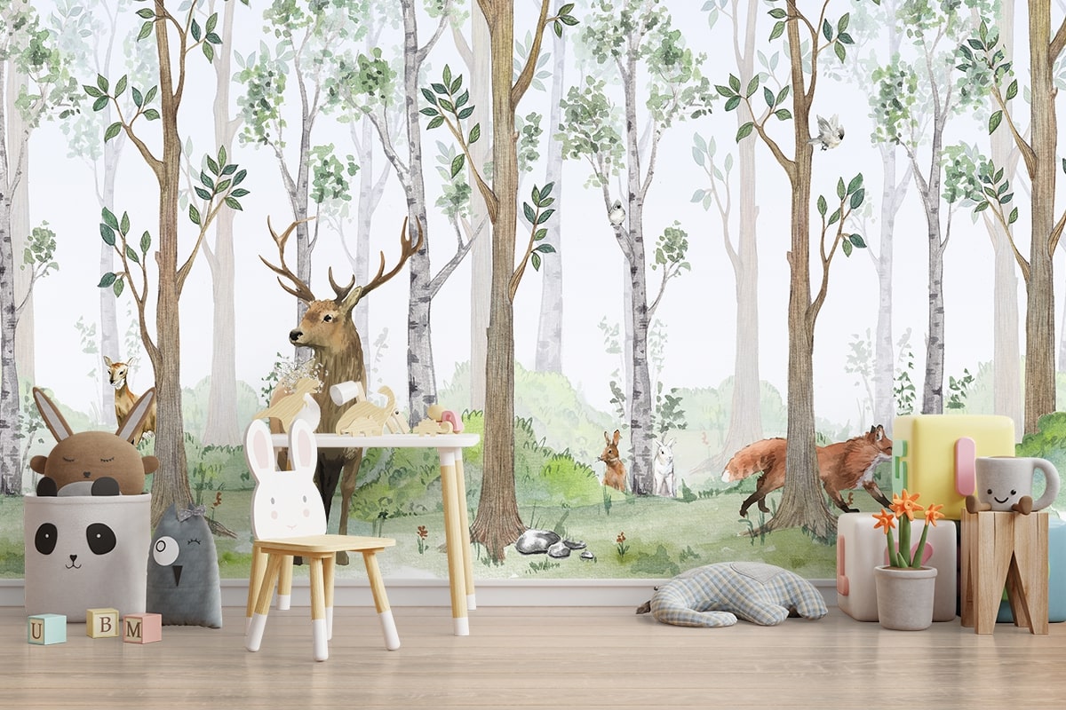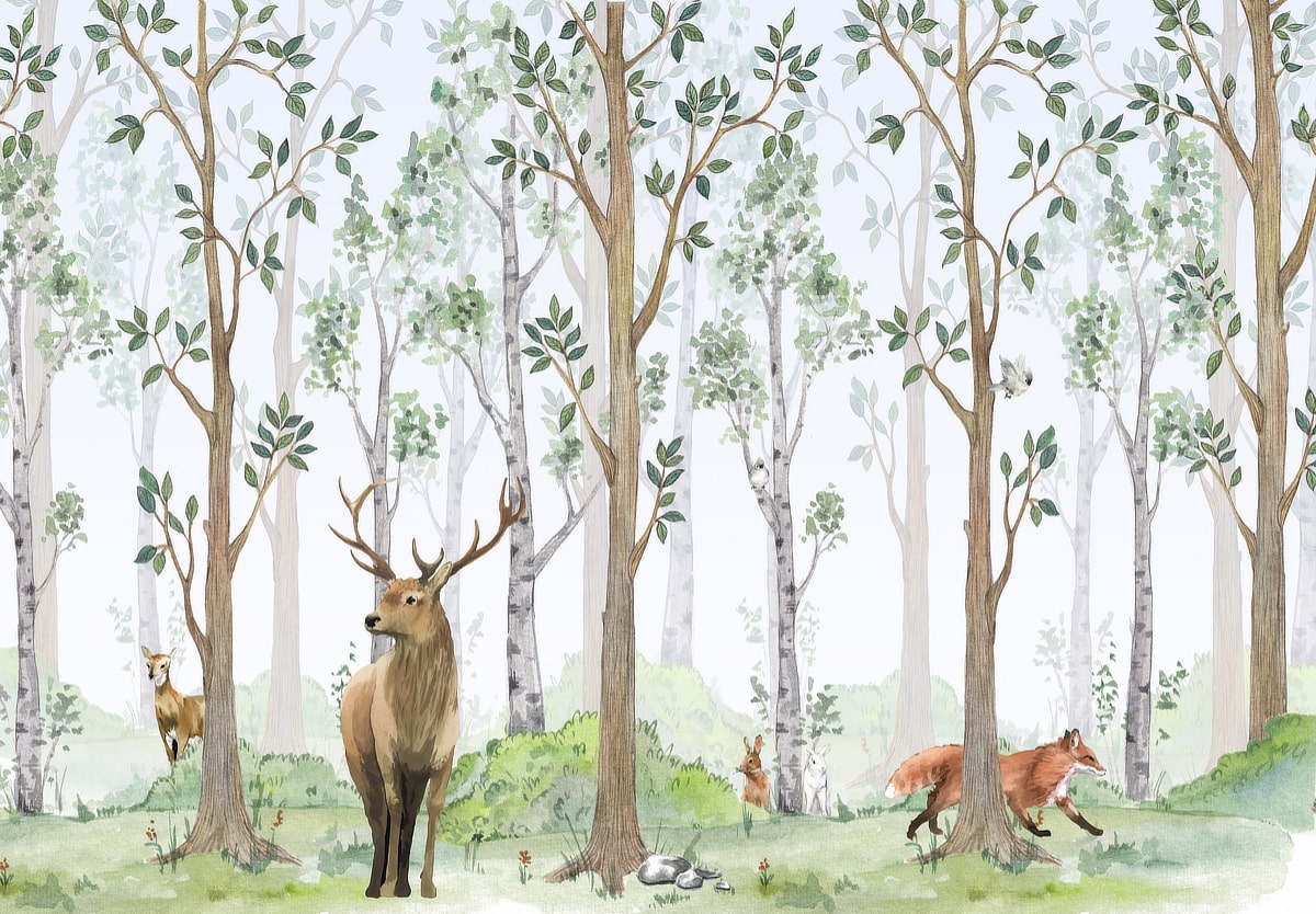 Papier Peint Panoramique Animaux Forêt 3 sur mesure – facile à poser et sans colle