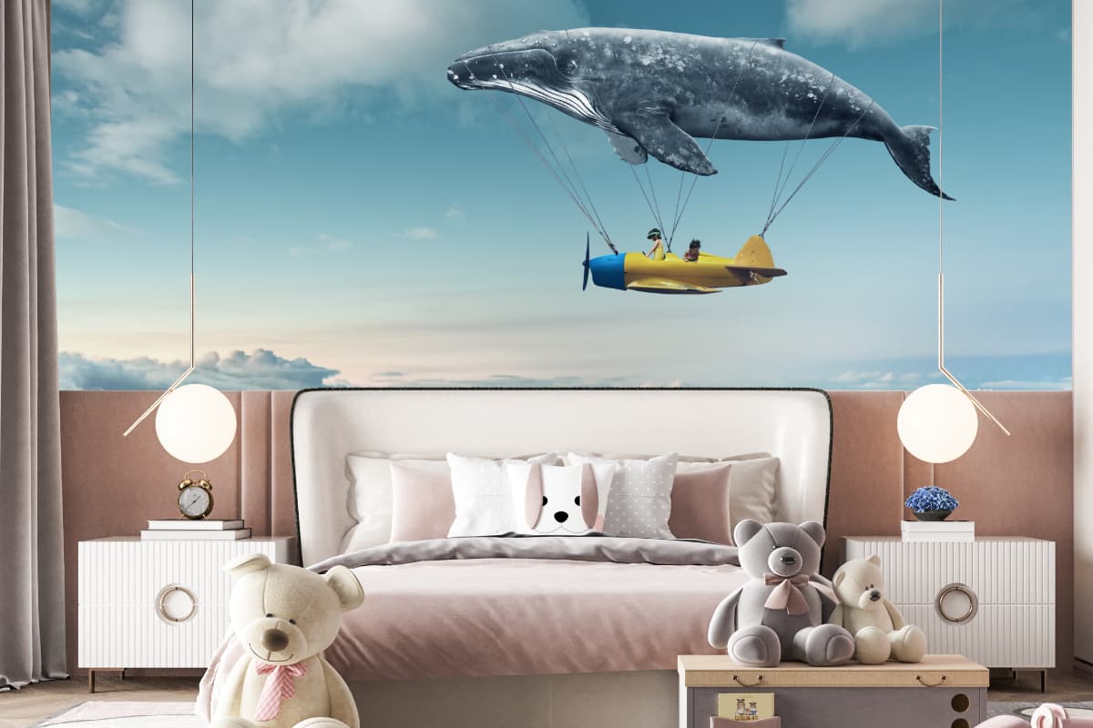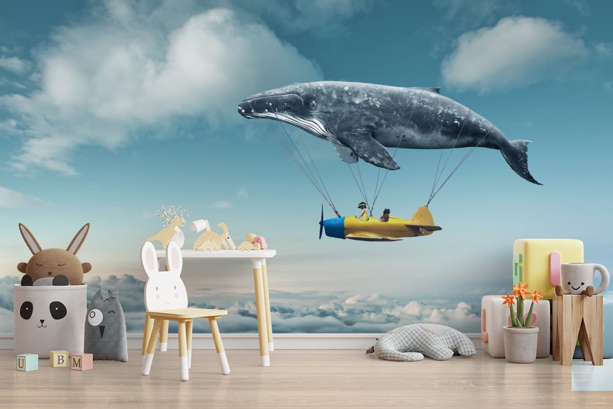 Papier Peint Panoramique Avion Baleine Féérie sur mesure – facile à poser et sans colle