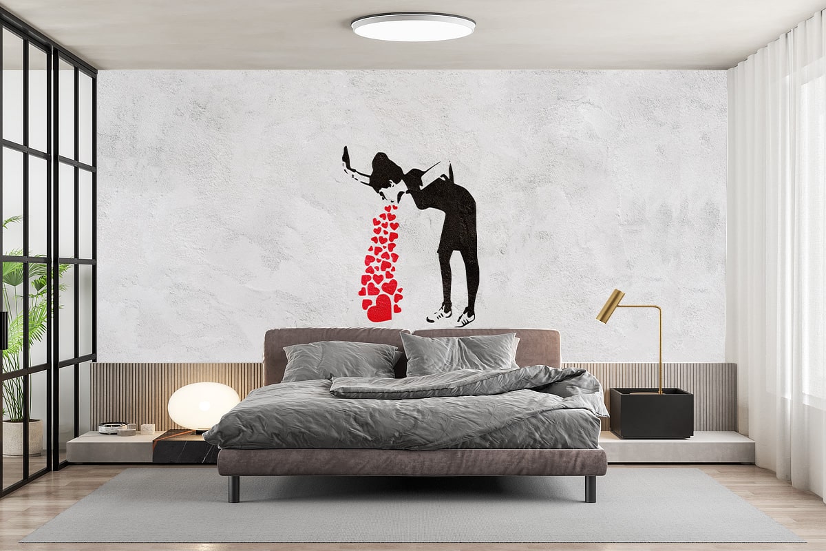 Offrez une seconde vie à vos murs avec un Papier Peint Panoramique Banksy - Femme qui vomit des coeurs sur mesure, simple à poser, durable, et respectueux de l’environnement. C’est la solution idéale pour créer une ambiance unique, sans travaux compliqués ni matériel spécifique.