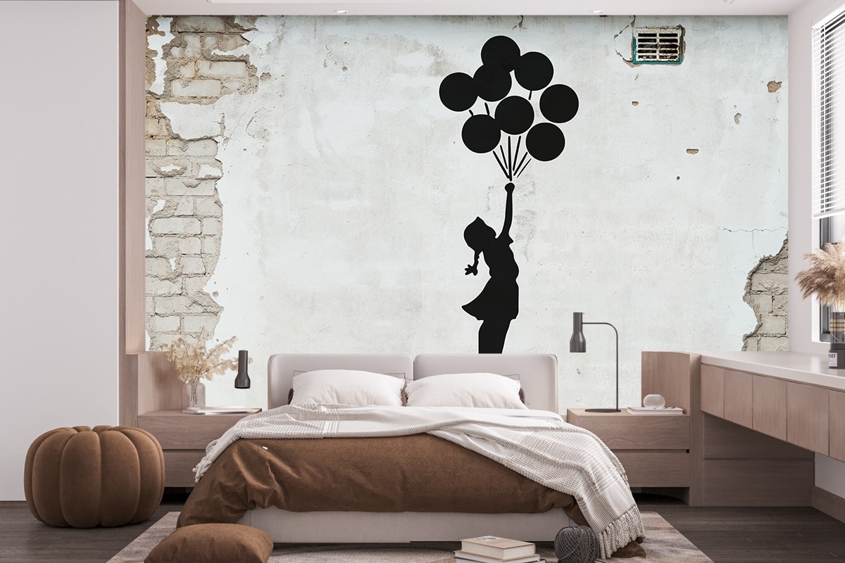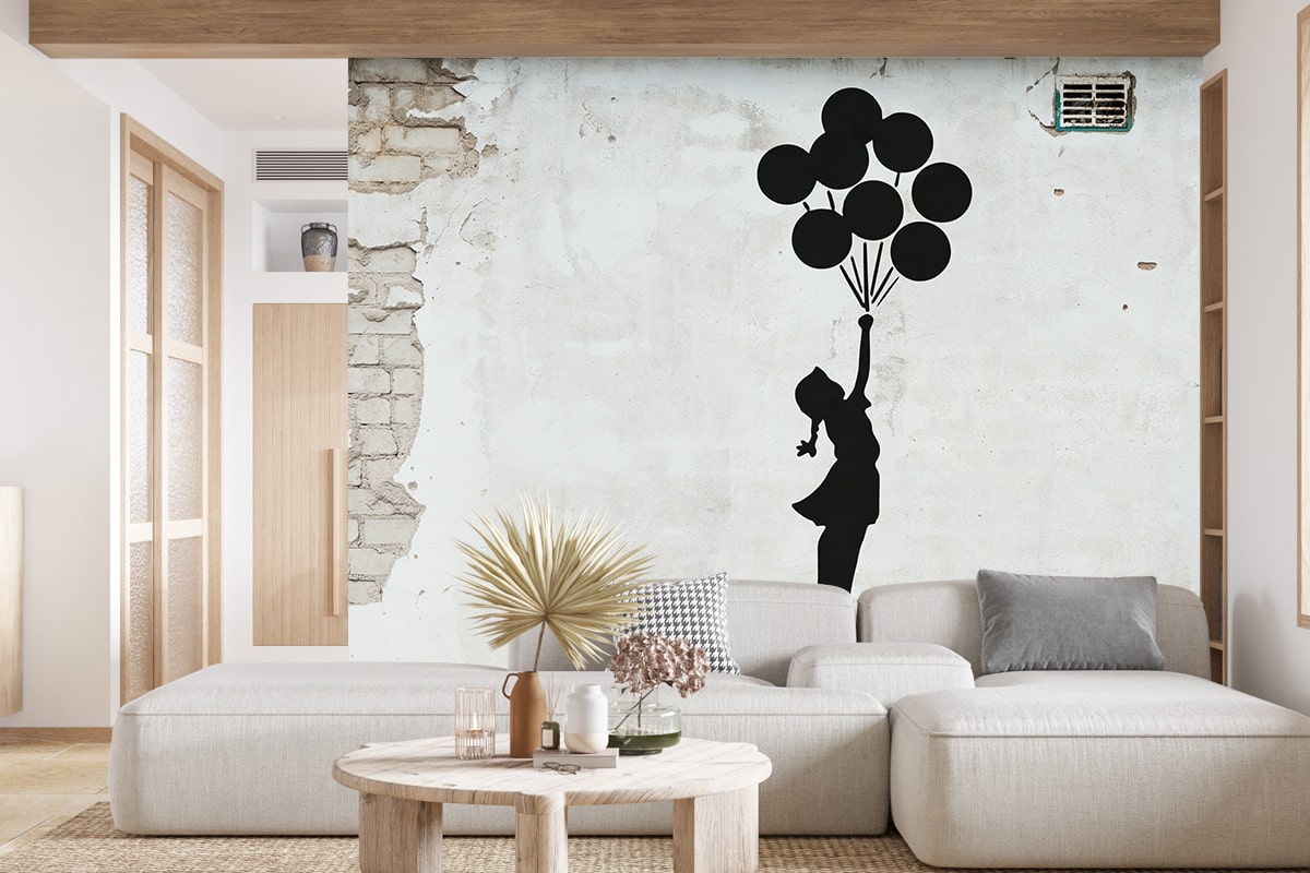 Papier Peint Panoramique Banksy - La Fille Aux Ballons sur mesure – facile à poser et sans colle