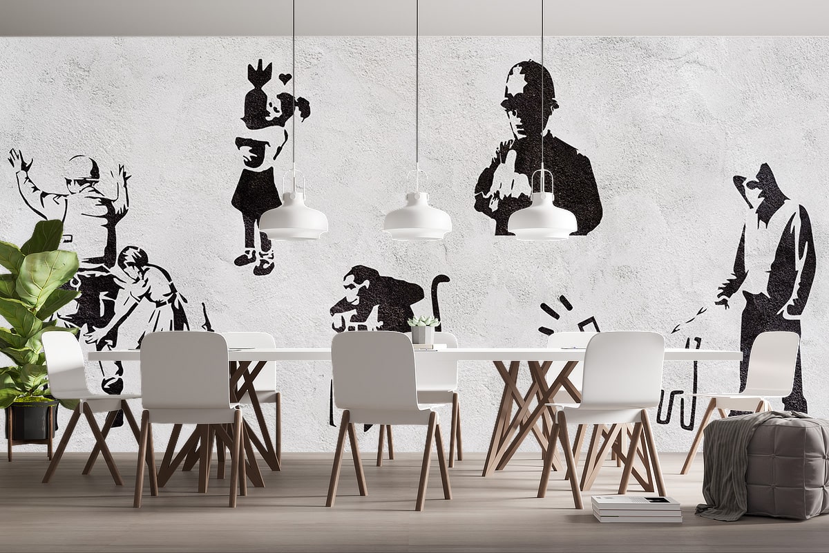 Offrez une seconde vie à vos murs avec un Papier Peint Panoramique Banksy Pêle-Mêle sur mesure, simple à poser, durable, et respectueux de l’environnement. C’est la solution idéale pour créer une ambiance unique, sans travaux compliqués ni matériel spécifique.