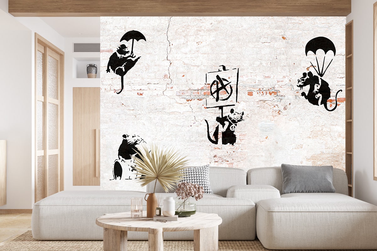 Papier Peint Panoramique Banksy - Rats sur mesure – facile à poser et sans colle