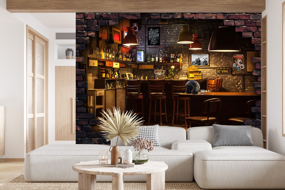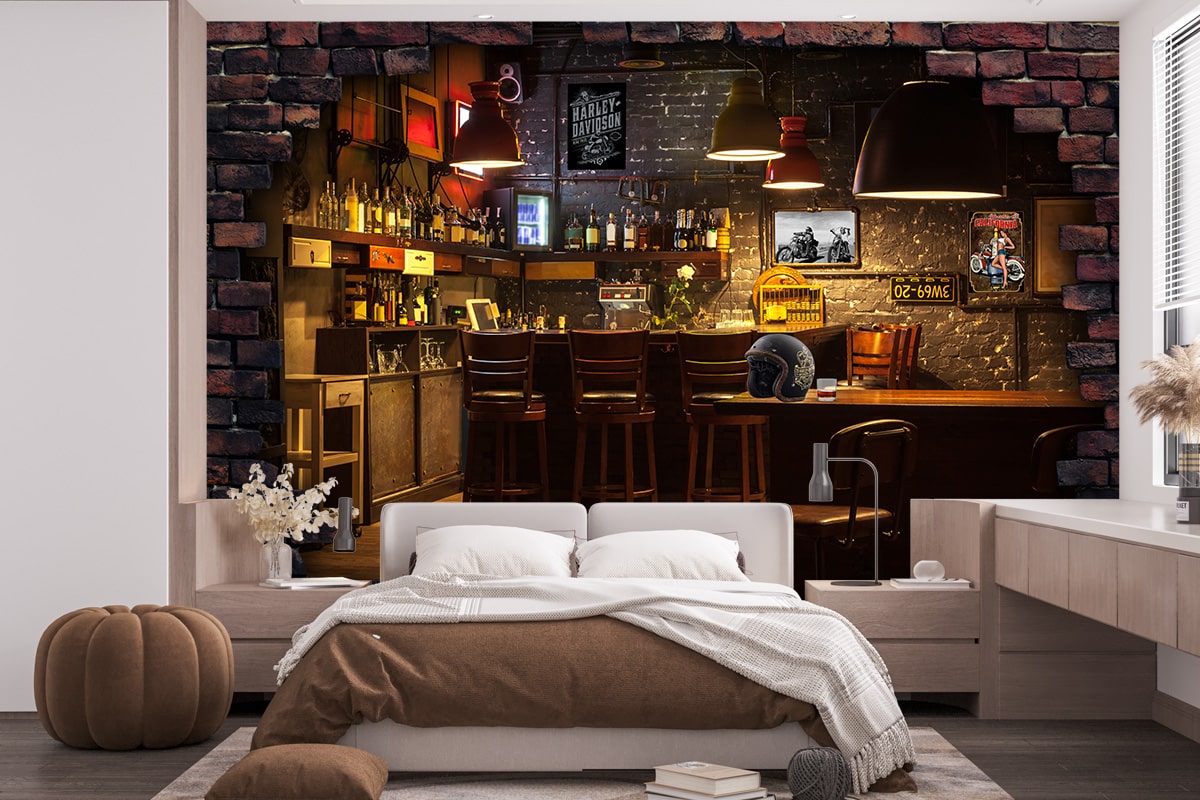 Papier Peint Panoramique Bar Moto sur mesure – facile à poser et sans colle