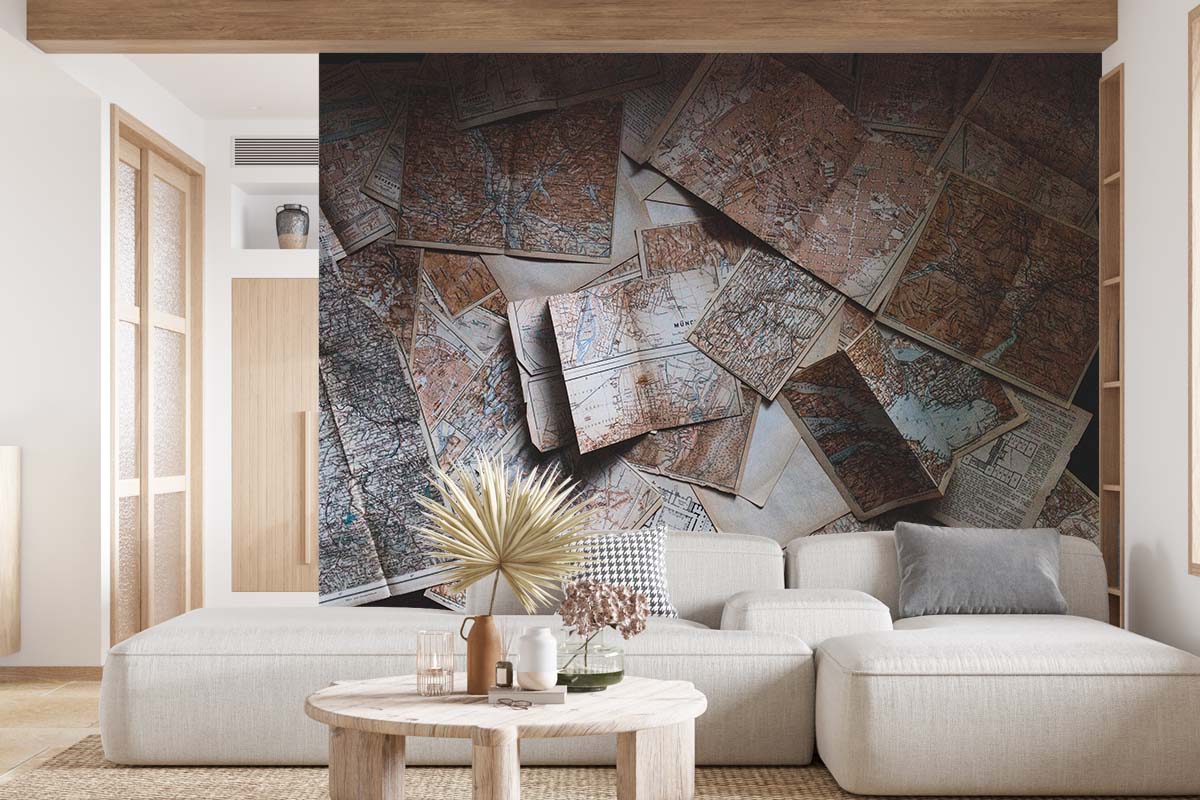 Papier Peint Panoramique Carte Map sur mesure – facile à poser et sans colle