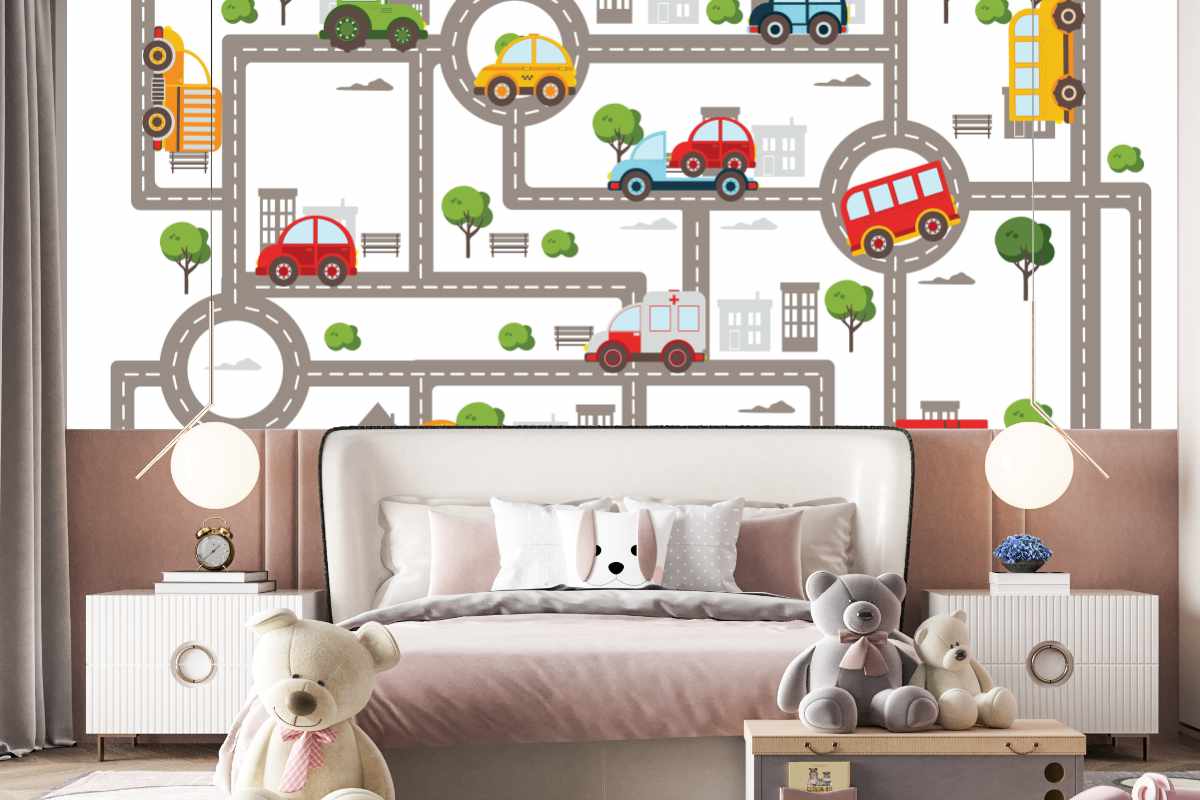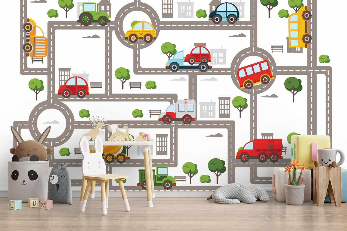 Papier Peint Panoramique Circuit Enfant sur mesure – facile à poser et sans colle