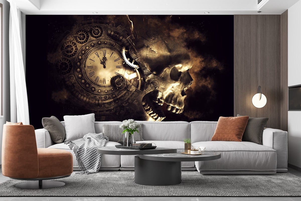 Papier Peint Panoramique Crane Steampunk Skull sur mesure – facile à poser et sans colle