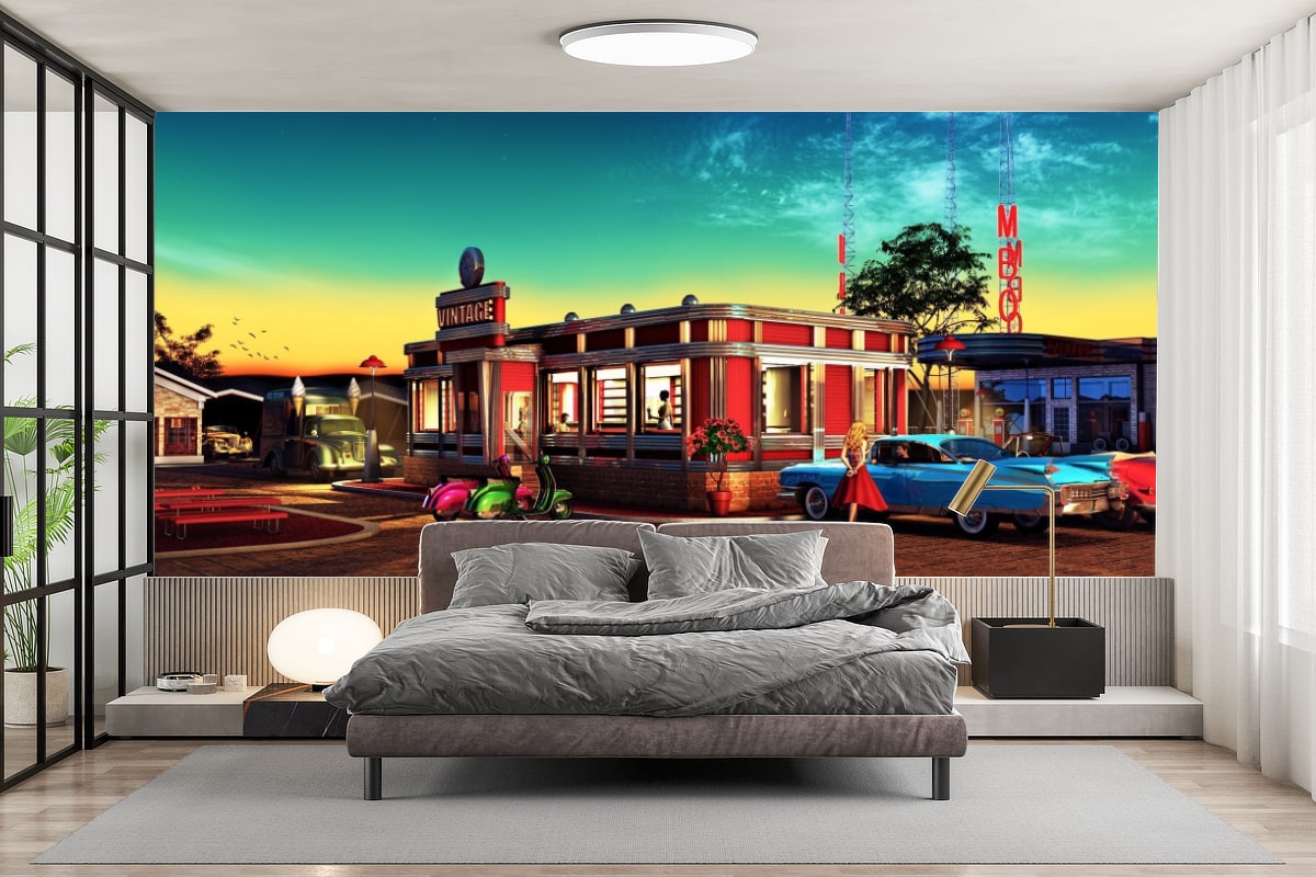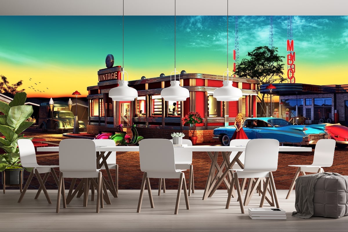 Papier peint Panoramique Dinner Vintage Américain sur mesure – facile à poser et sans colle
