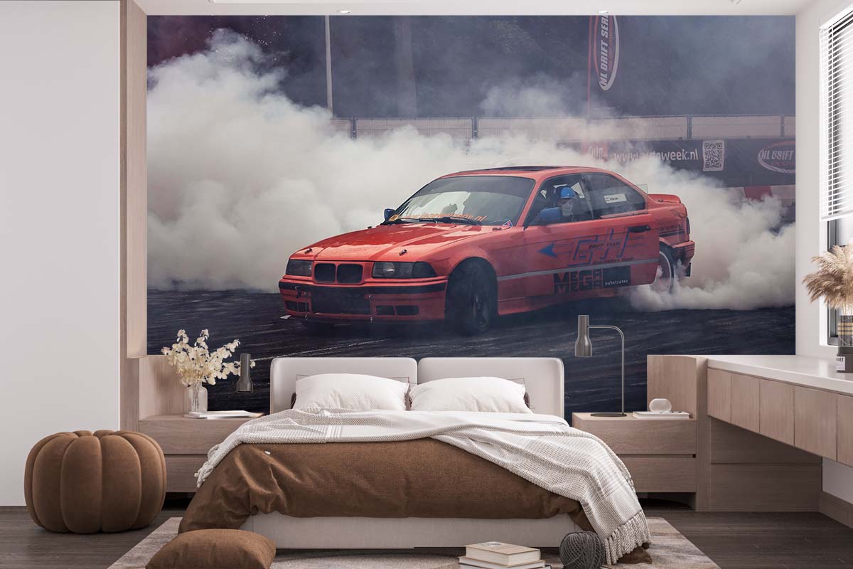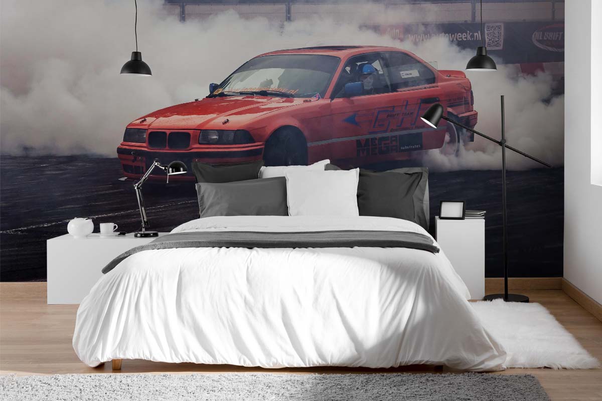 Papier Peint Panoramique Drift BMW sur mesure – facile à poser et sans colle