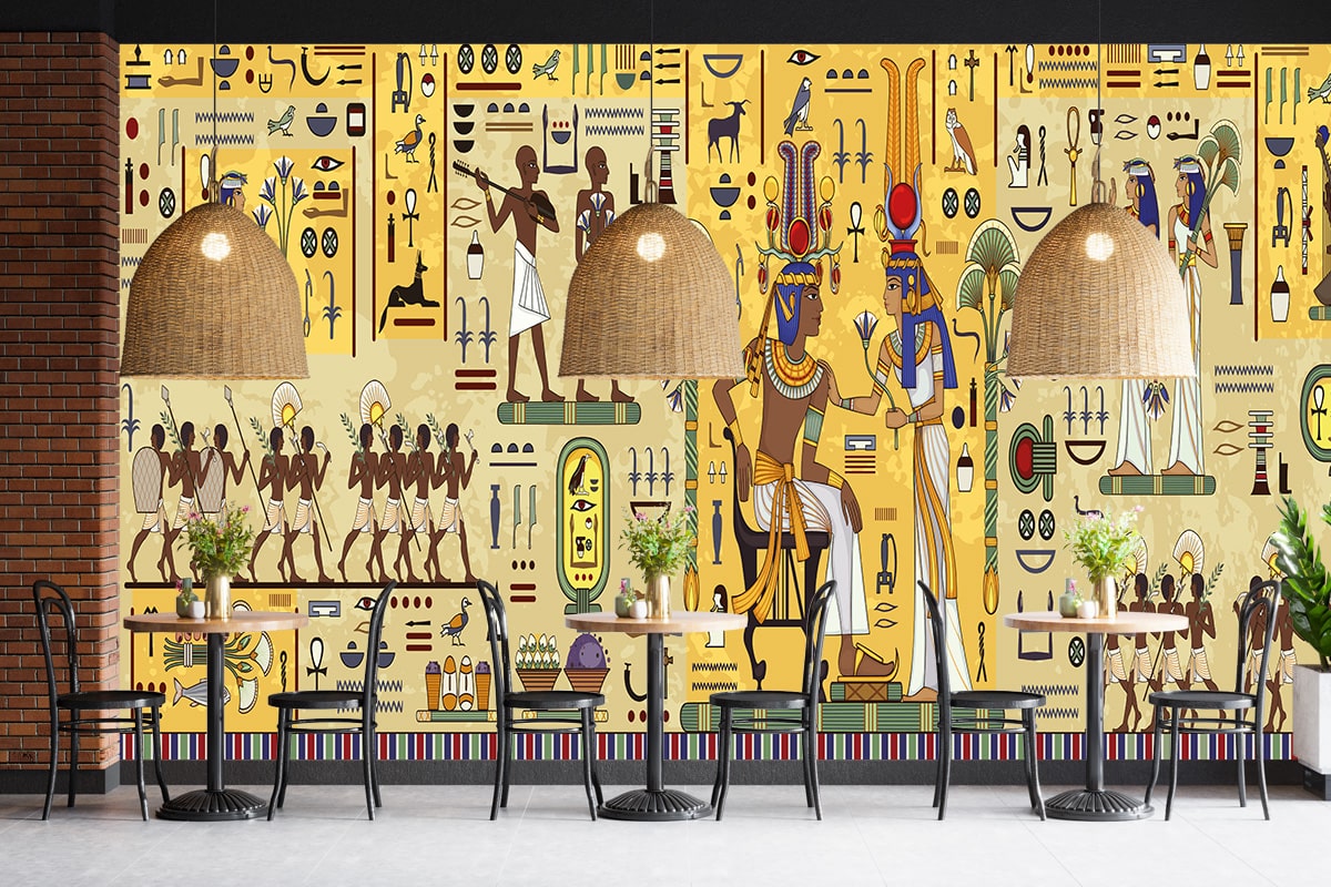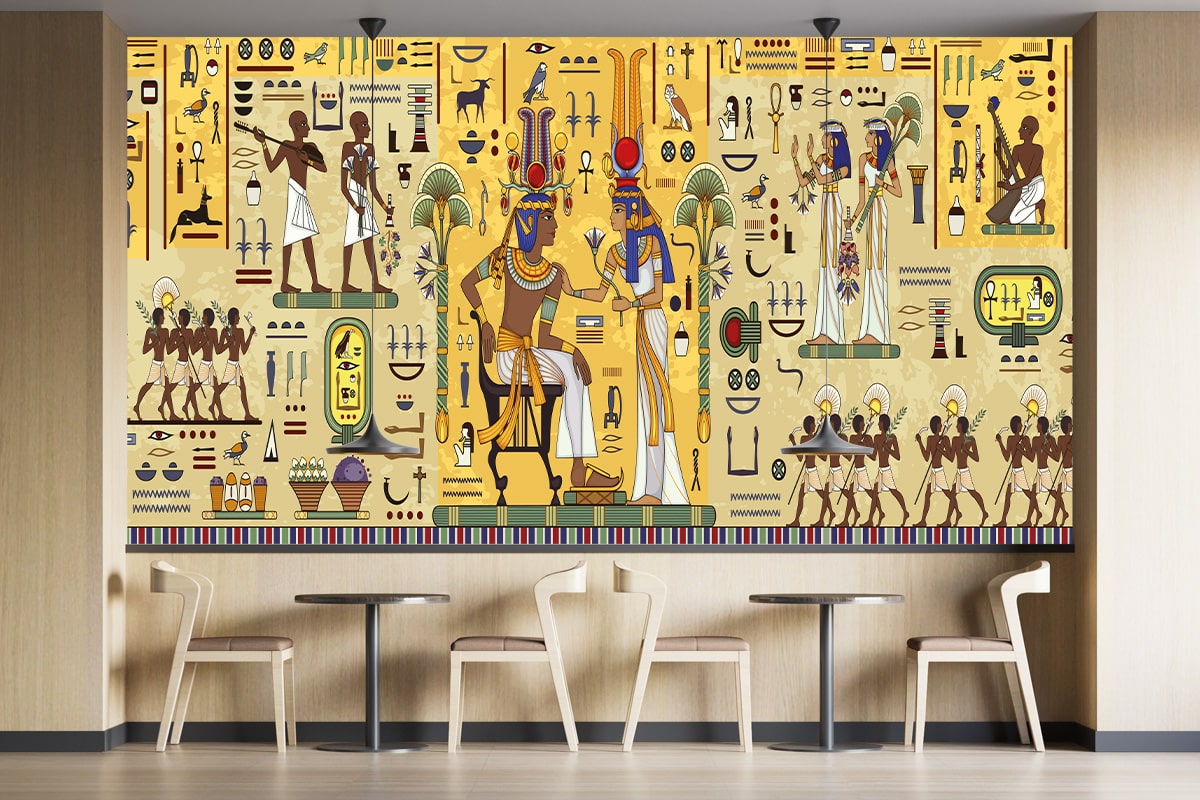 Papier Peint Panoramique Egypte Hiéroglyphe sur mesure – facile à poser et sans colle