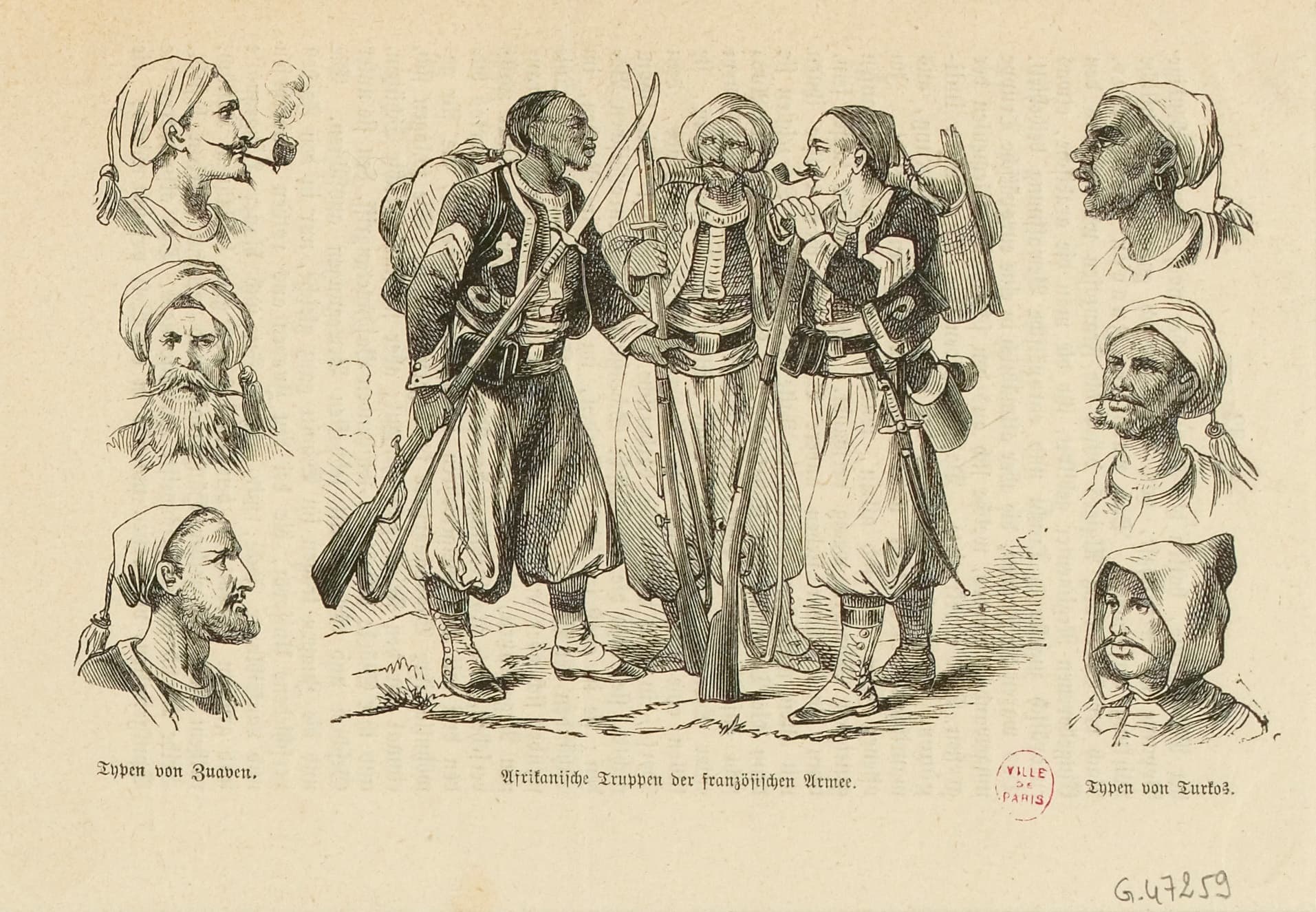 Offrez une seconde vie à vos murs avec un Papier Peint Panoramique Estampe 19e siècle - Afrikanische Truppen der französischen Armee sur mesure, simple à poser, durable, et respectueux de l’environnement. C’est la solution idéale pour créer une ambiance unique, sans travaux compliqués ni matériel spécifique.