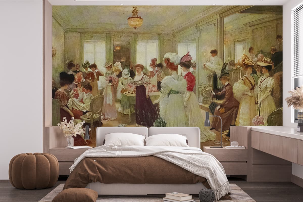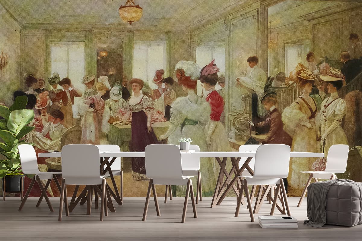 Faites de votre intérieur un espace qui vous ressemble ! Nos papiers peints personnalisés s’adaptent à toutes les pièces : salon, chambre d’enfant, cuisine, couloir, ou même locaux professionnels. Vous pouvez commander votre Papier Peint Panoramique Estampe 19e siècle Henri Gervex - Cinq heures chez Paquin aux dimensions exactes de votre mur, pour un ajustement parfait sans découpe inutile. Notre service sur mesure vous garantit un résultat propre, net et professionnel.