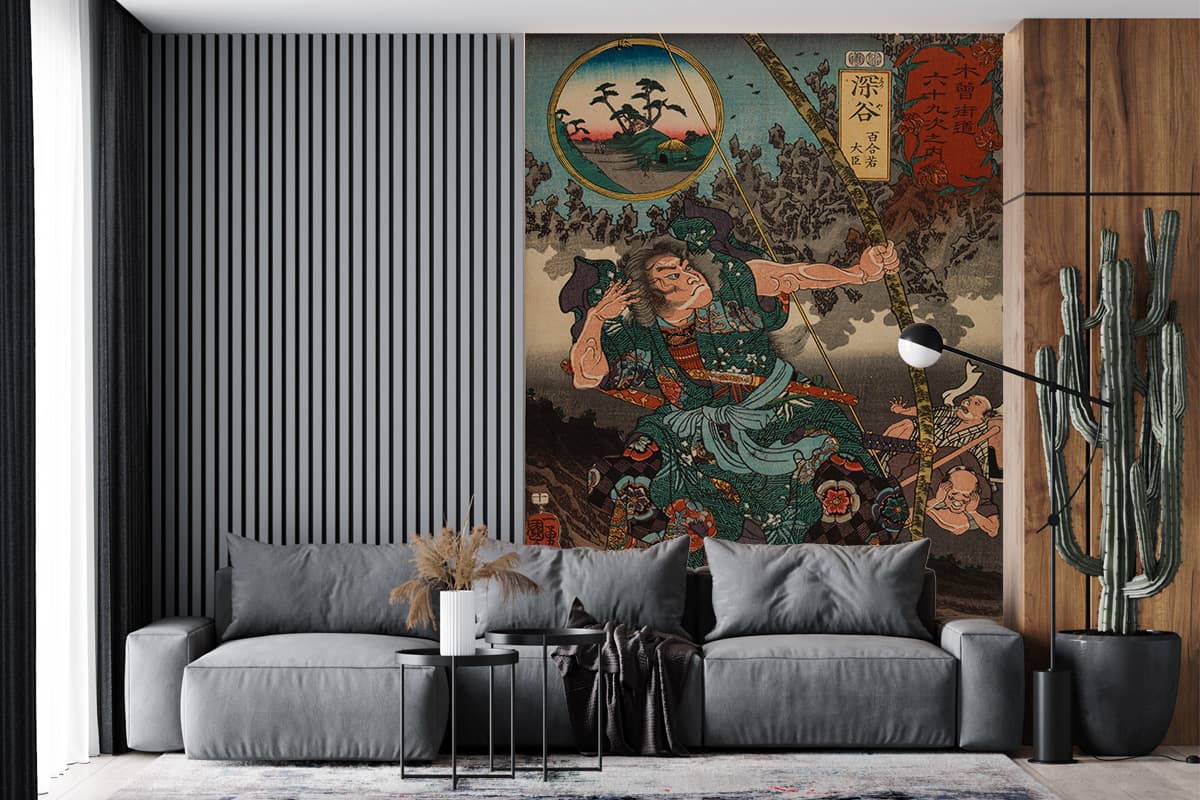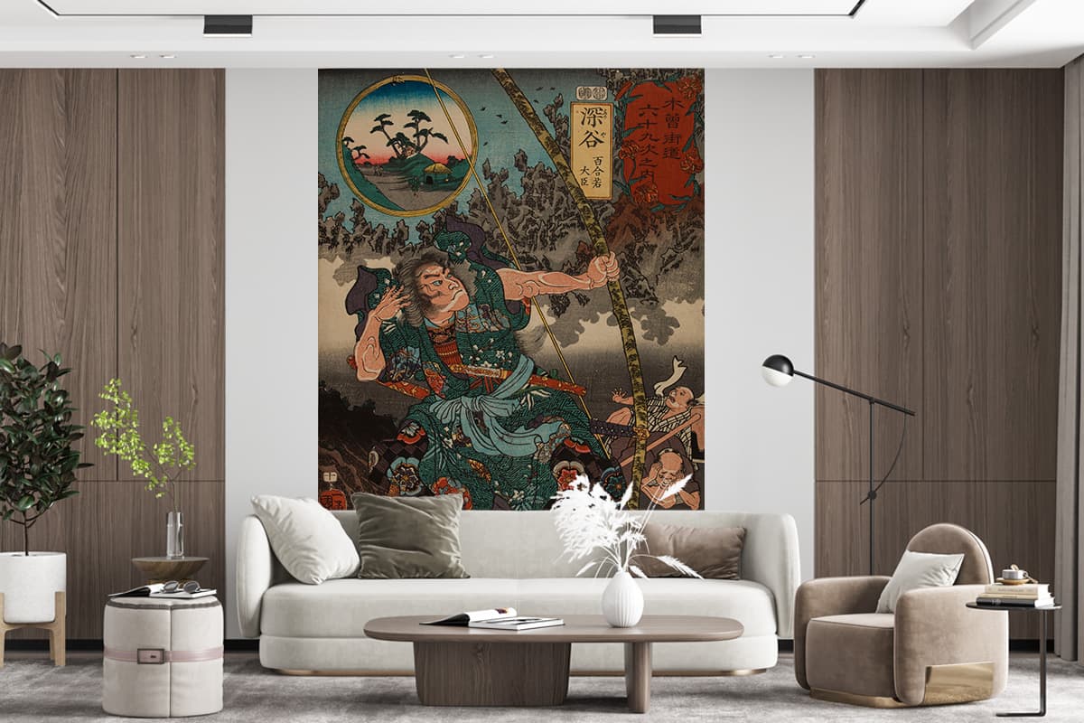 Faites de votre intérieur un espace qui vous ressemble ! Nos papiers peints personnalisés s’adaptent à toutes les pièces : salon, chambre d’enfant, cuisine, couloir, ou même locaux professionnels. Vous pouvez commander votre Papier Peint Panoramique Estampe 19e siècle Utagawa Kuniyoshi - Fukaya aux dimensions exactes de votre mur, pour un ajustement parfait sans découpe inutile. Notre service sur mesure vous garantit un résultat propre, net et professionnel.