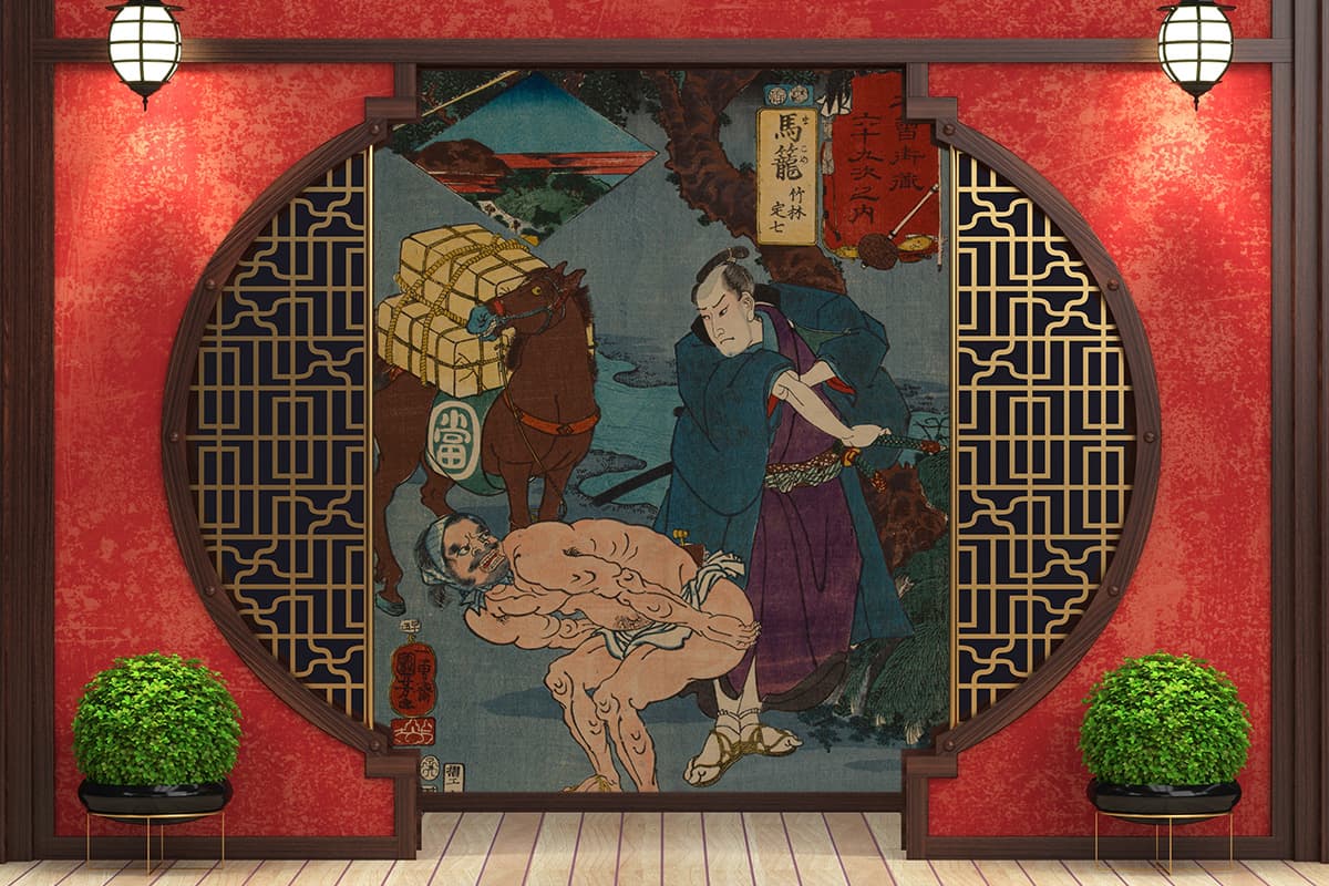 Tout ce qu’il faut pour poser facilement votre Papier Peint Panoramique Estampe 19e siècle Utagawa Kuniyoshi - Magome sans matériel supplémentaire.