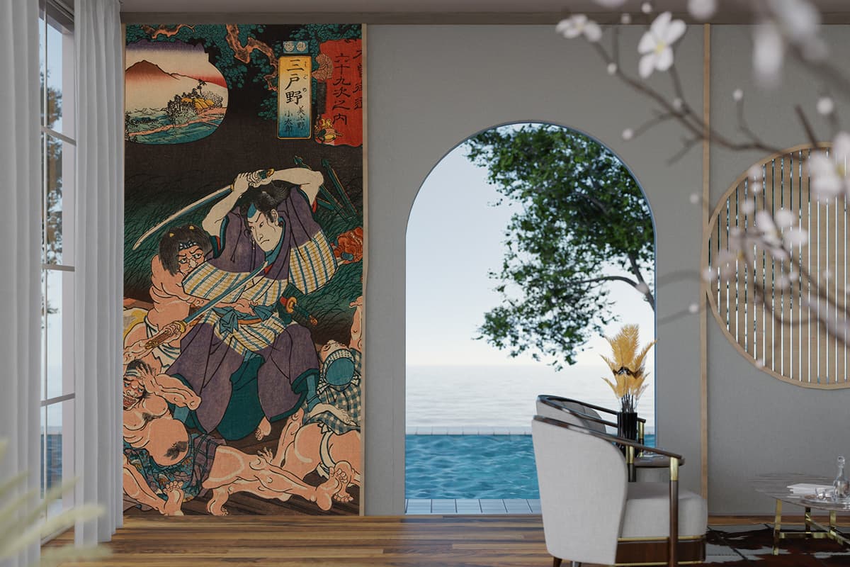 Faites de votre intérieur un espace qui vous ressemble ! Nos papiers peints personnalisés s’adaptent à toutes les pièces : salon, chambre d’enfant, cuisine, couloir, ou même locaux professionnels. Vous pouvez commander votre Papier Peint Panoramique Estampe 19e siècle Utagawa Kuniyoshi - Midono aux dimensions exactes de votre mur, pour un ajustement parfait sans découpe inutile. Notre service sur mesure vous garantit un résultat propre, net et professionnel.