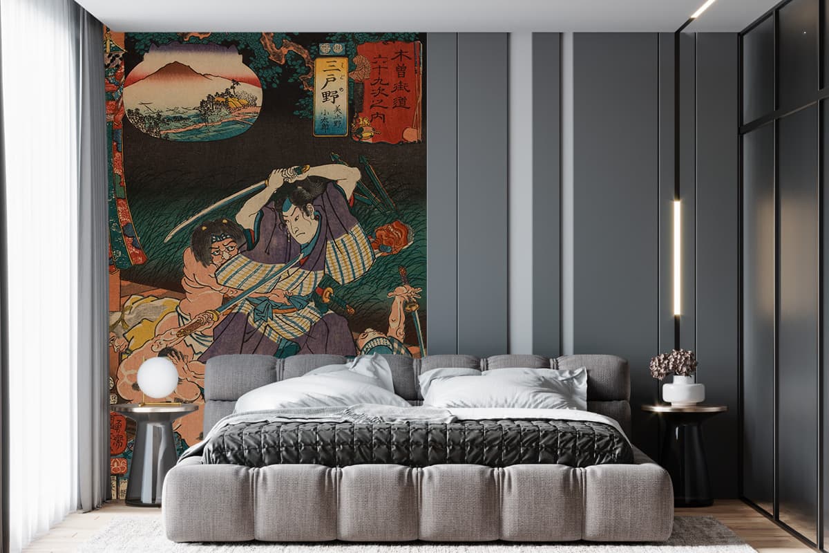 Tout ce qu’il faut pour poser facilement votre Papier Peint Panoramique Estampe 19e siècle Utagawa Kuniyoshi - Midono sans matériel supplémentaire.