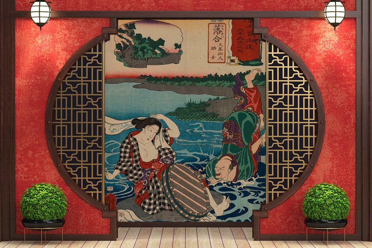 Tout ce qu’il faut pour poser facilement votre Papier Peint Panoramique Estampe 19e siècle Utagawa Kuniyoshi - Ochiai sans matériel supplémentaire.