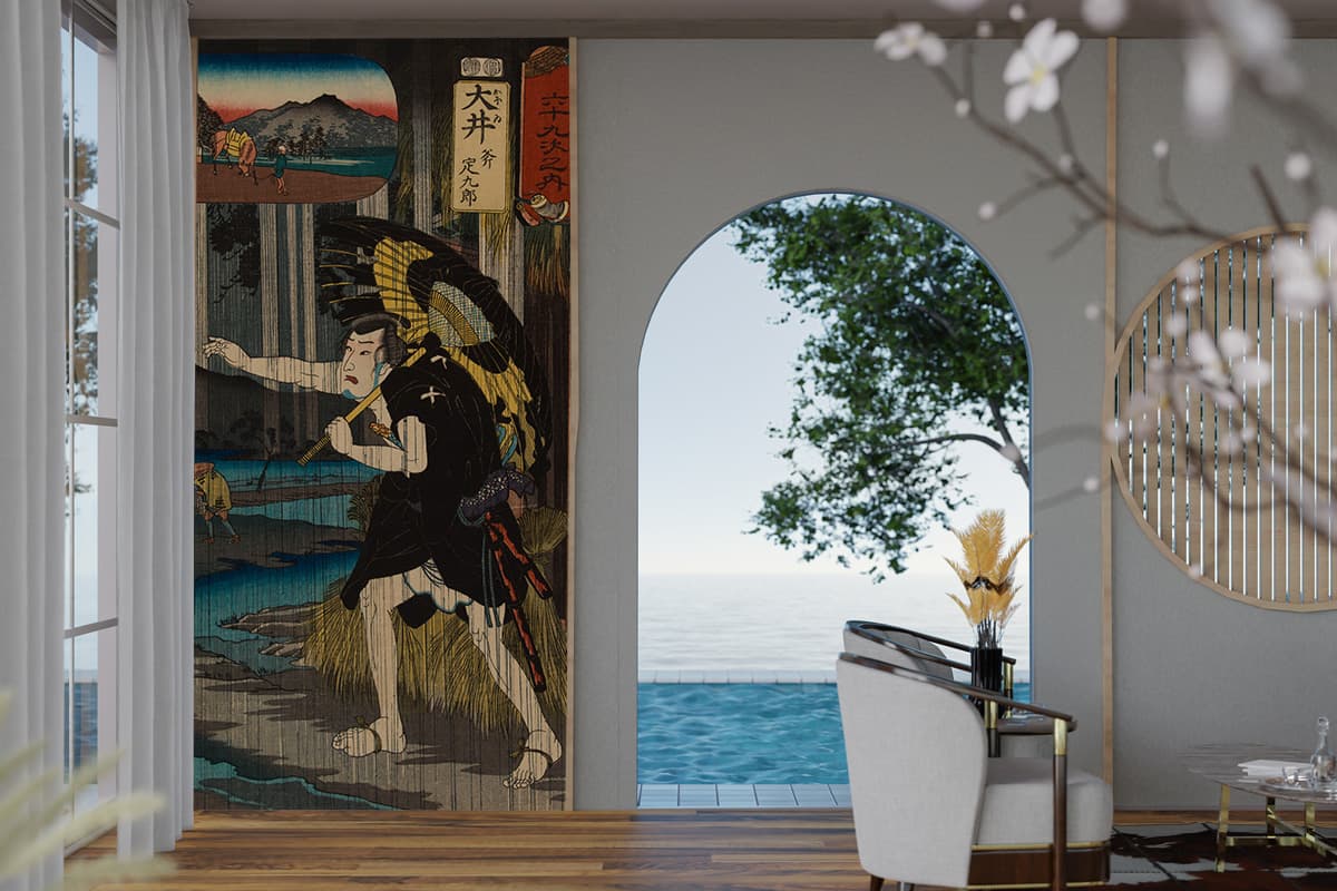 Tout ce qu’il faut pour poser facilement votre Papier Peint Panoramique Estampe 19e siècle Utagawa Kuniyoshi - Ōi 大井 sans matériel supplémentaire.