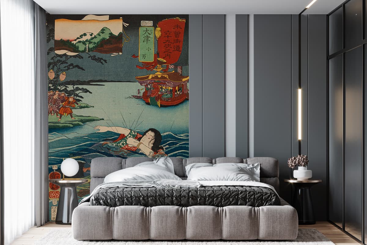 Faites de votre intérieur un espace qui vous ressemble ! Nos papiers peints personnalisés s’adaptent à toutes les pièces : salon, chambre d’enfant, cuisine, couloir, ou même locaux professionnels. Vous pouvez commander votre Papier Peint Panoramique Estampe 19e siècle Utagawa Kuniyoshi - Ōtsu aux dimensions exactes de votre mur, pour un ajustement parfait sans découpe inutile. Notre service sur mesure vous garantit un résultat propre, net et professionnel.