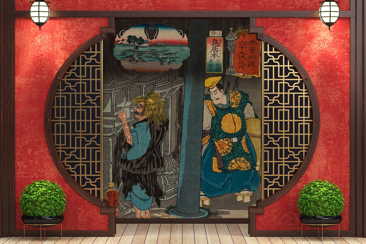 Tout ce qu’il faut pour poser facilement votre Papier Peint Panoramique Estampe 19e siècle Utagawa Kuniyoshi - Toriimoto sans matériel supplémentaire.