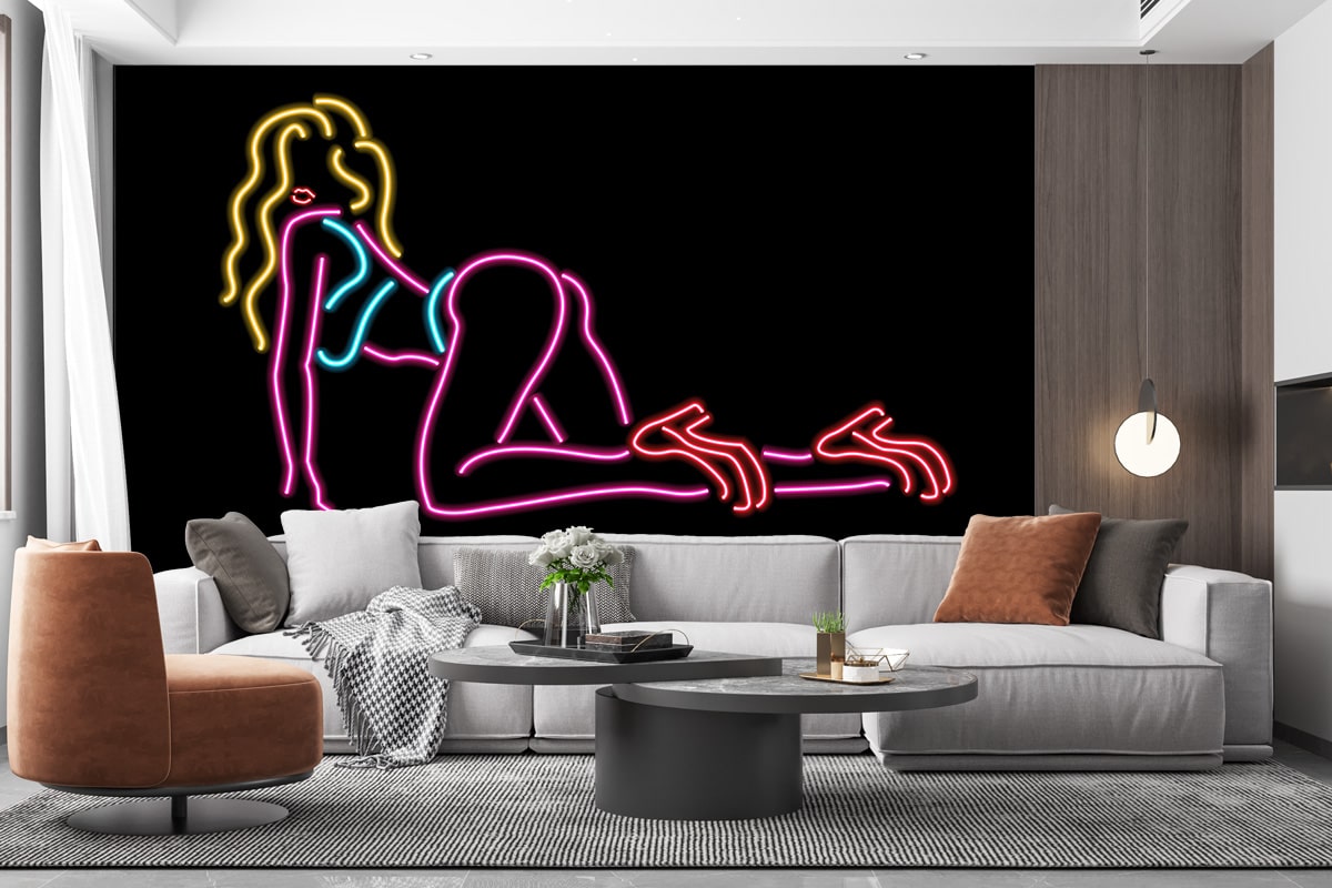 Papier Peint Panoramique Femme Sexy Neon sur mesure – facile à poser et sans colle