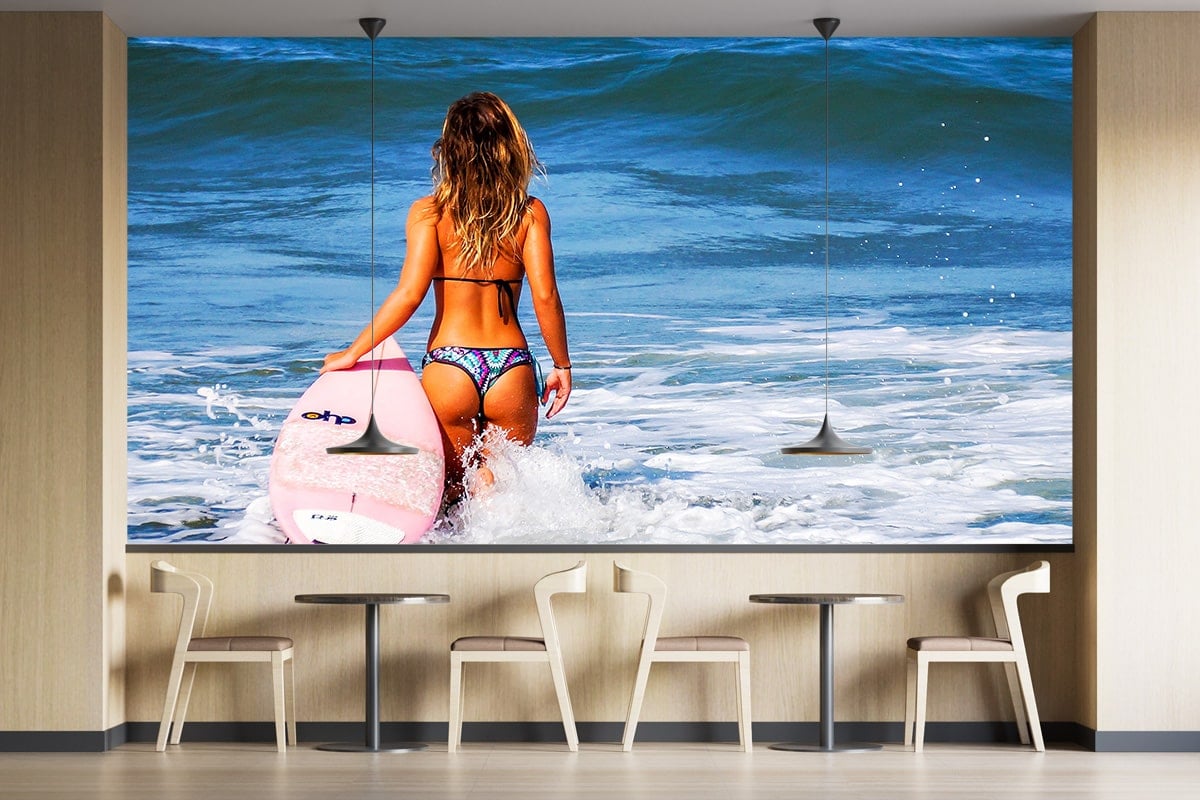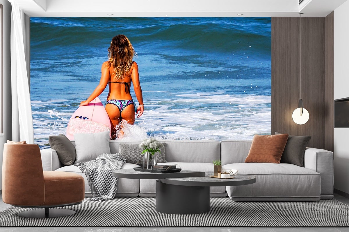 Papier Peint Panoramique Femme Sexy Surf sur mesure – facile à poser et sans colle