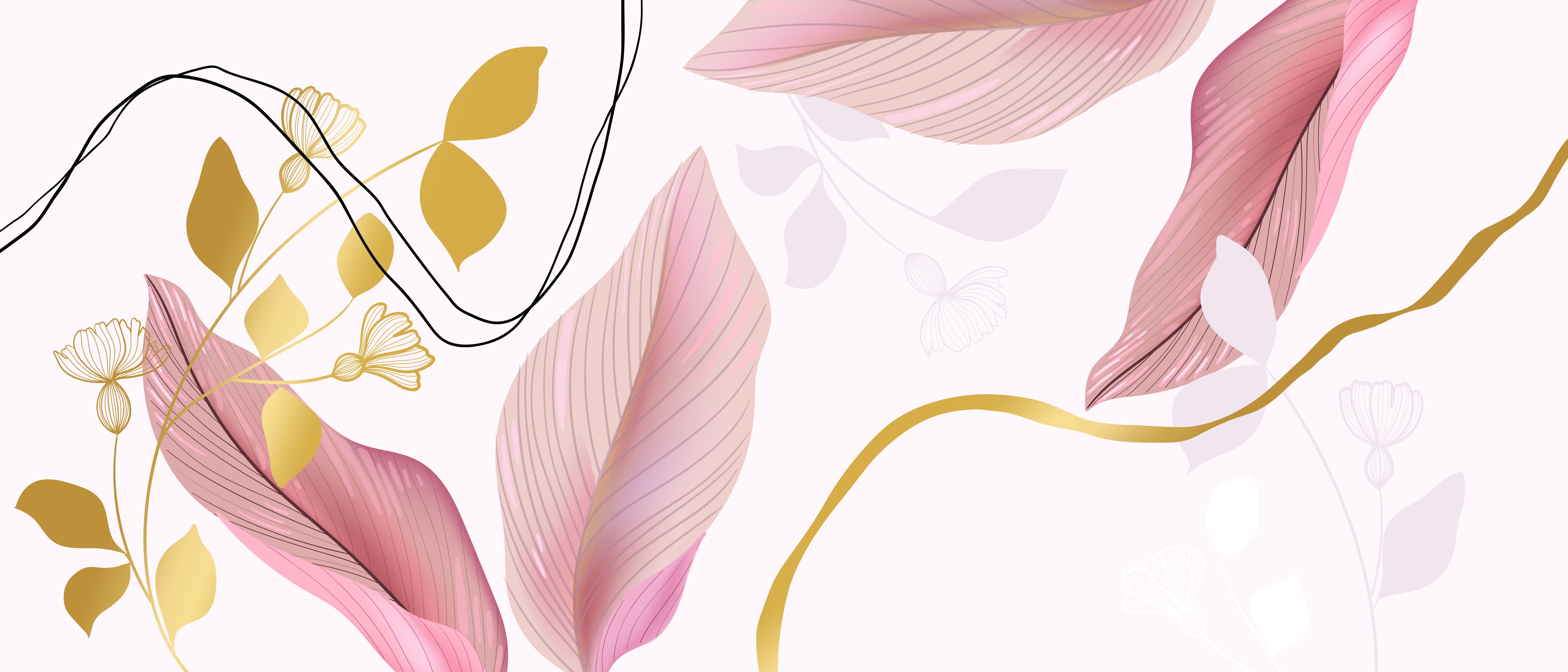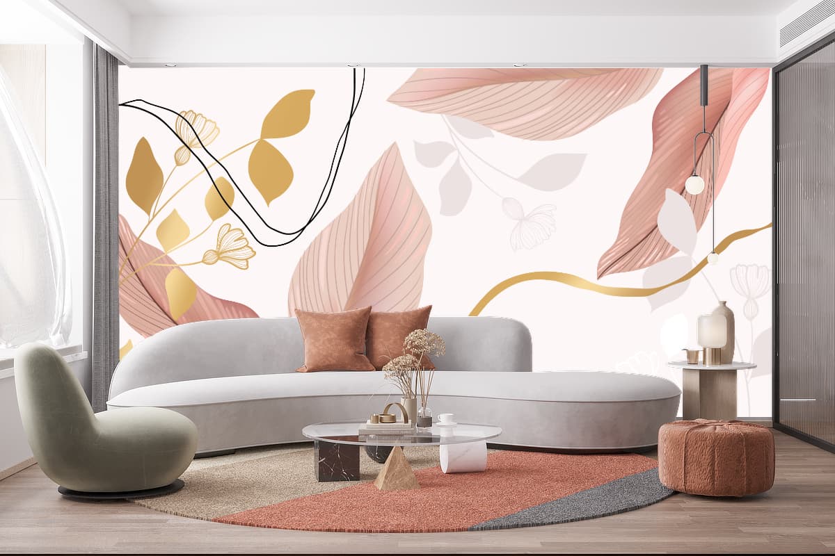 Papier Peint Panoramique Feuilles et Or sur mesure – facile à poser et sans colle