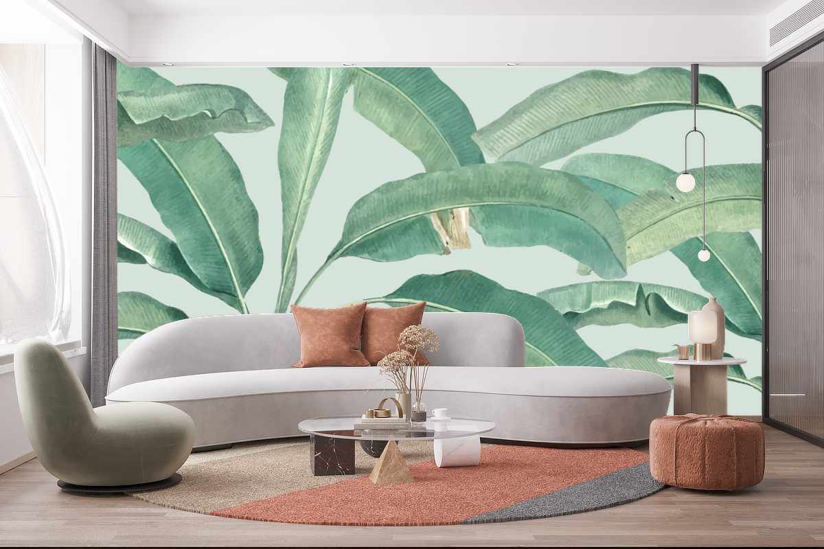 Papier Peint Panoramique Feuilles Tropicales Jungle sur mesure – facile à poser et sans colle