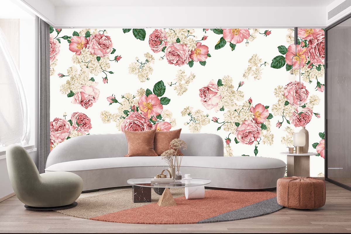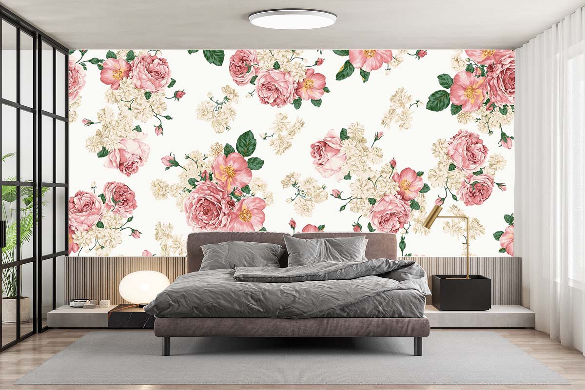 Papier Peint Panoramique Fleurs Vintage Motif sur mesure – facile à poser et sans colle