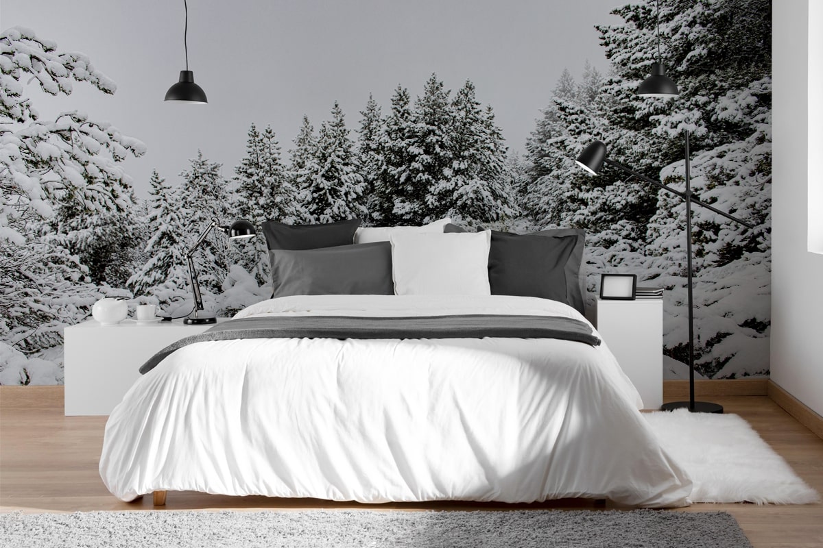 Papier Peint Panoramique Foret Enneigée sur mesure – facile à poser et sans colle