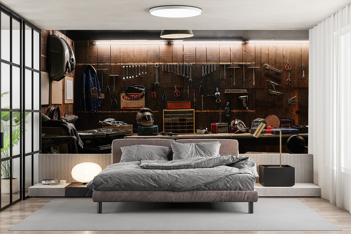 Papier Peint Panoramique Garage Atelier Vintage sur mesure – facile à poser et sans colle