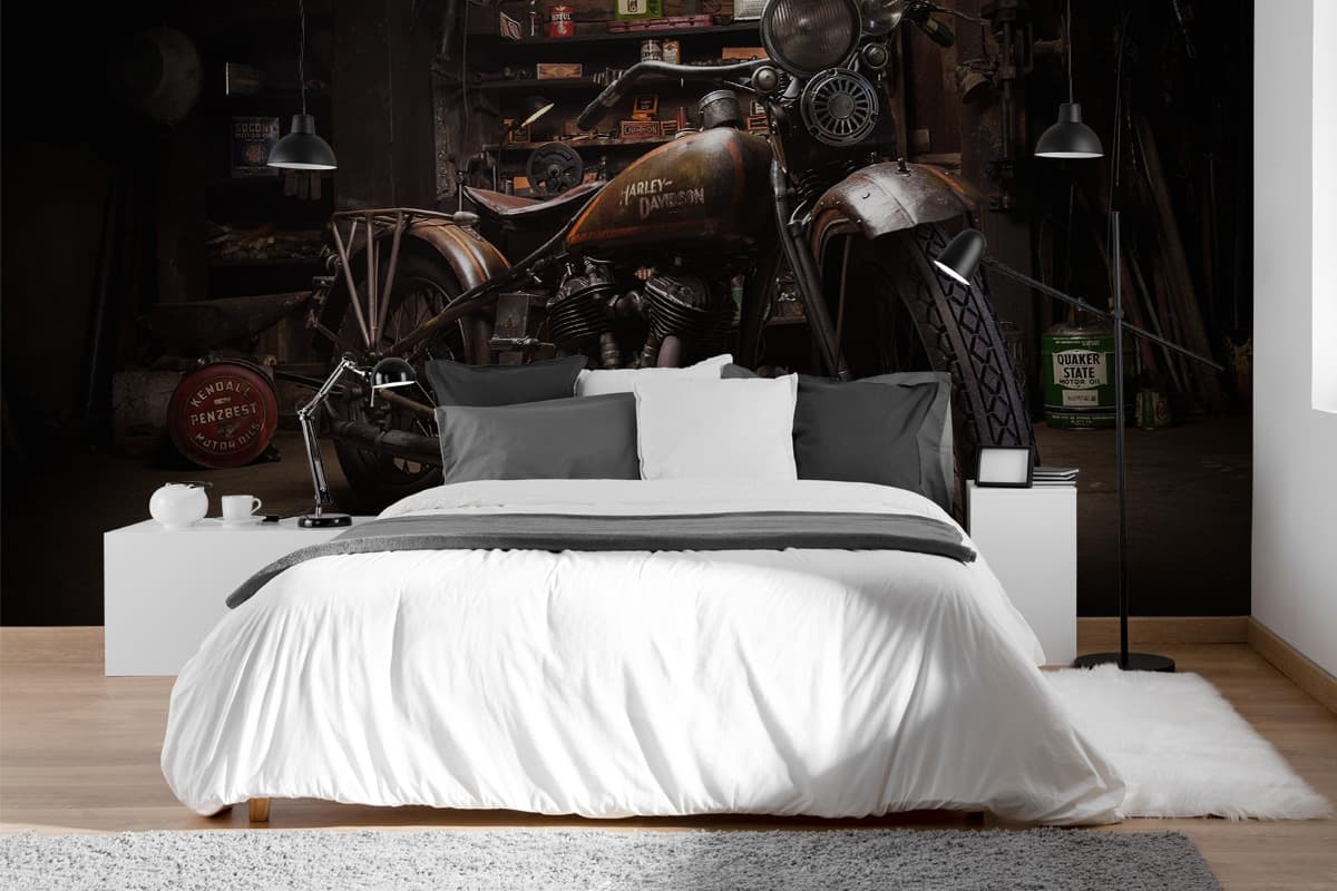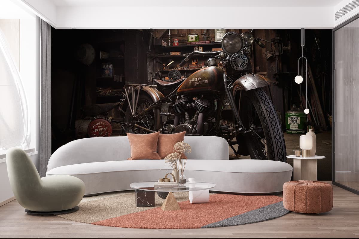 Papier Peint Panoramique Garage Moto Vintage