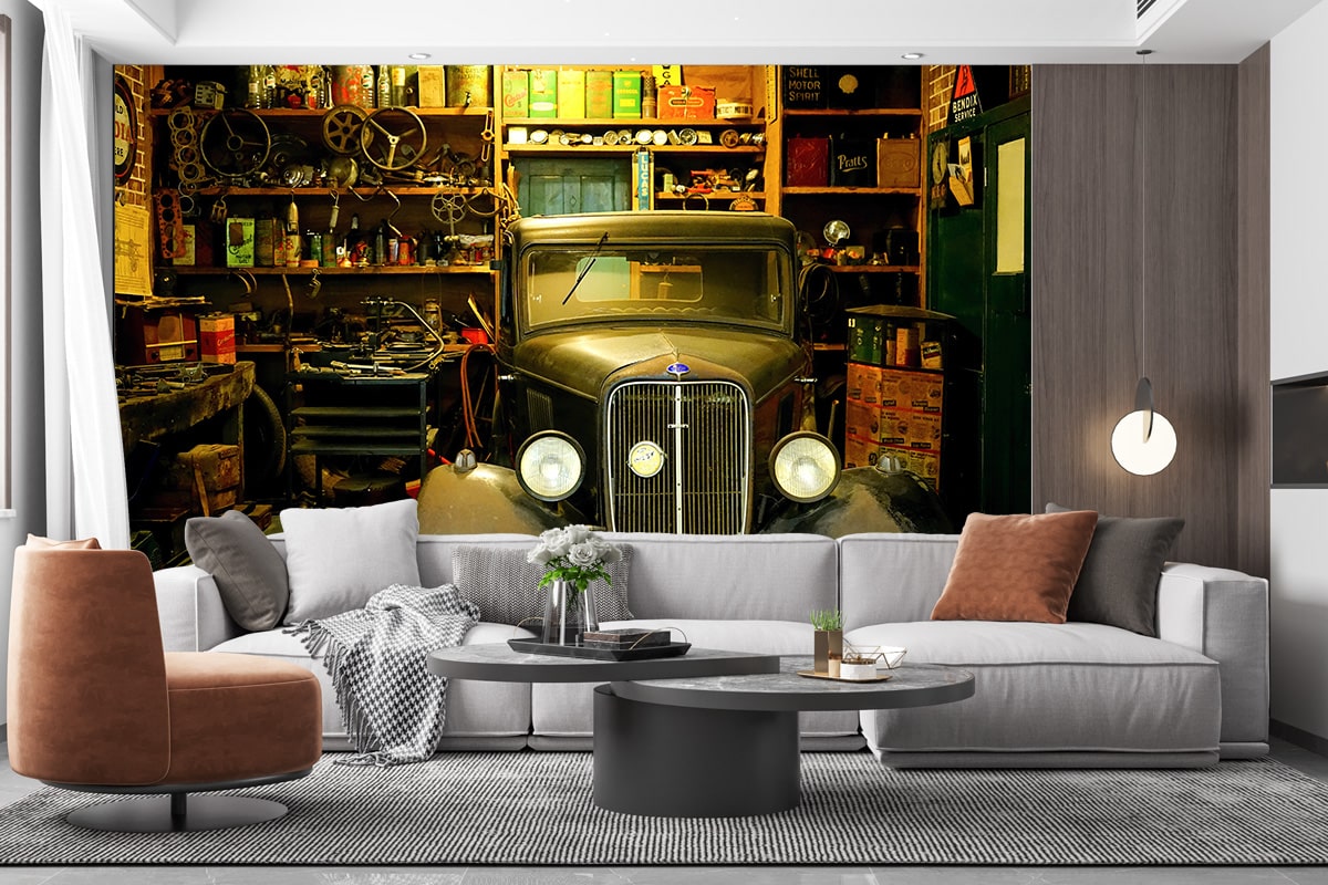 Papier Peint Panoramique Garage Vintage sur mesure – facile à poser et sans colle