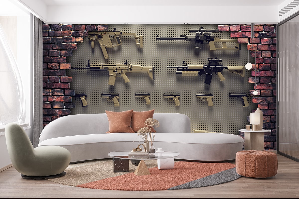 Faites de votre intérieur un espace qui vous ressemble ! Nos papiers peints personnalisés s’adaptent à toutes les pièces : salon, chambre d’enfant, cuisine, couloir, ou même locaux professionnels. Vous pouvez commander votre Papier Peint Panoramique Mur D'armes aux dimensions exactes de votre mur, pour un ajustement parfait sans découpe inutile. Notre service sur mesure vous garantit un résultat propre, net et professionnel.