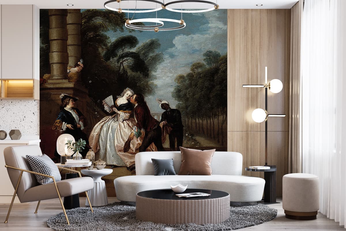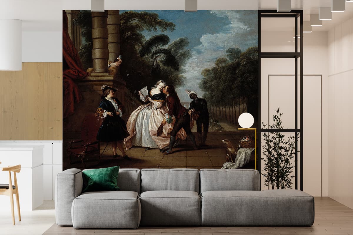 Offrez une seconde vie à vos murs avec un Papier Peint Panoramique Peinture 18e siècle Jean-Baptiste Pater - Le Baiser rendu sur mesure, simple à poser, durable, et respectueux de l’environnement. C’est la solution idéale pour créer une ambiance unique, sans travaux compliqués ni matériel spécifique.