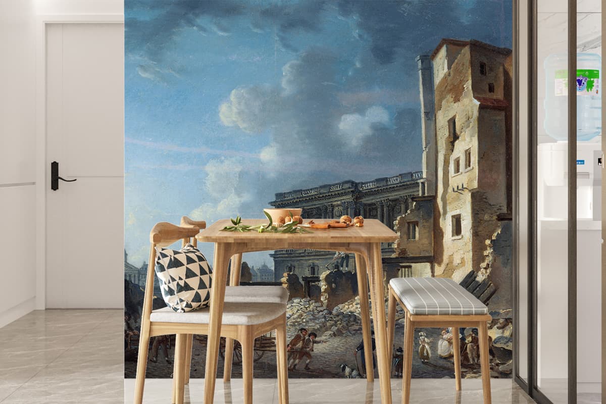 Offrez une seconde vie à vos murs avec un Papier Peint Panoramique Peinture 18e siècle Pierre-Antoine Demachy - Dégagement de la colonnade du Louvre sur mesure, simple à poser, durable, et respectueux de l’environnement. C’est la solution idéale pour créer une ambiance unique, sans travaux compliqués ni matériel spécifique.