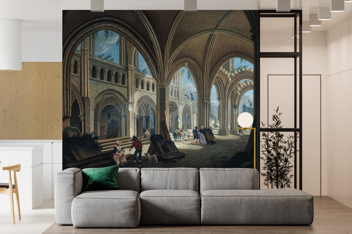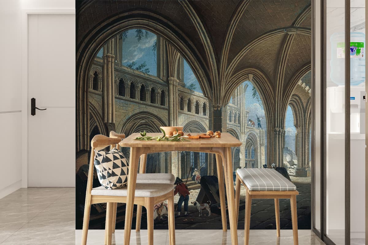 Offrez une seconde vie à vos murs avec un Papier Peint Panoramique Peinture 18e siècle Pierre-Antoine Demachy - Démolition de l'église Saint-Jean-en-Grève sur mesure, simple à poser, durable, et respectueux de l’environnement. C’est la solution idéale pour créer une ambiance unique, sans travaux compliqués ni matériel spécifique.