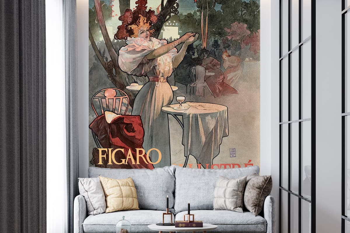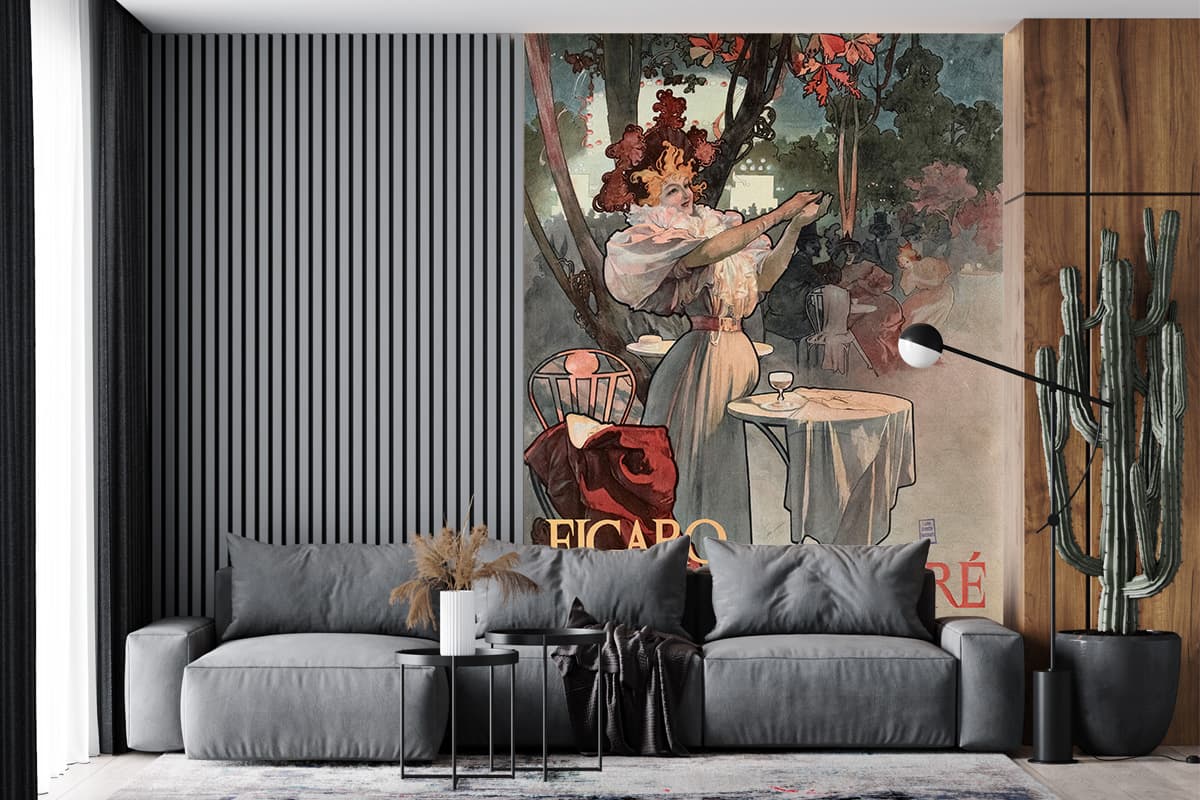 Offrez une seconde vie à vos murs avec un Papier Peint Panoramique Peinture 19e Alphonse Mucha - Figaro Illustré / Les cafés-concerts sur mesure, simple à poser, durable, et respectueux de l’environnement. C’est la solution idéale pour créer une ambiance unique, sans travaux compliqués ni matériel spécifique.