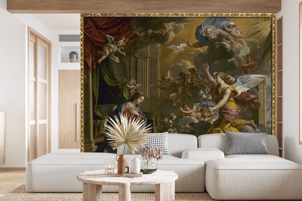 Offrez une seconde vie à vos murs avec un Papier Peint Panoramique Peinture 19e siècle Charles Poerson - L'Annonciation sur mesure, simple à poser, durable, et respectueux de l’environnement. C’est la solution idéale pour créer une ambiance unique, sans travaux compliqués ni matériel spécifique.