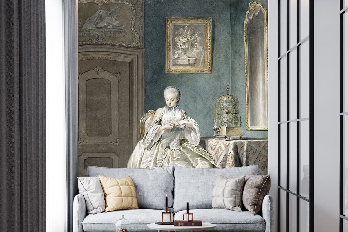 Tout ce qu’il faut pour poser facilement votre Papier Peint Panoramique Peinture 19e siècle Jacobus Buys - Jeune Brodeuse à la Cage sans matériel supplémentaire.