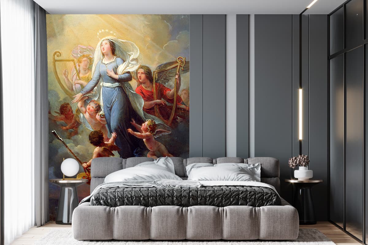 Offrez une seconde vie à vos murs avec un Papier Peint Panoramique Peinture 19e siècle Joseph-Ferdinand Lancernon - L'apothéose de sainte Geneviève sur mesure, simple à poser, durable, et respectueux de l’environnement. C’est la solution idéale pour créer une ambiance unique, sans travaux compliqués ni matériel spécifique.