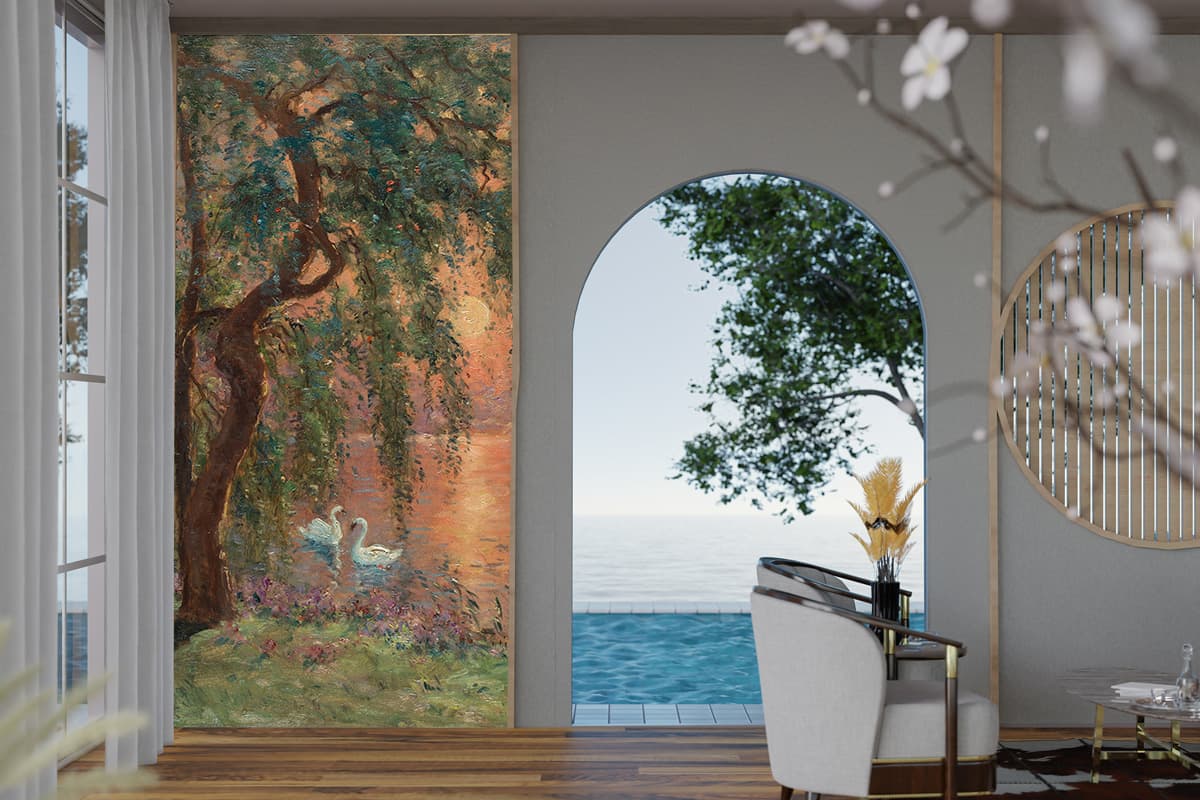 Offrez une seconde vie à vos murs avec un Papier Peint Panoramique Peinture 20e siècle Iwill - Le lac d'amour - le saule pleureur sur mesure, simple à poser, durable, et respectueux de l’environnement. C’est la solution idéale pour créer une ambiance unique, sans travaux compliqués ni matériel spécifique.