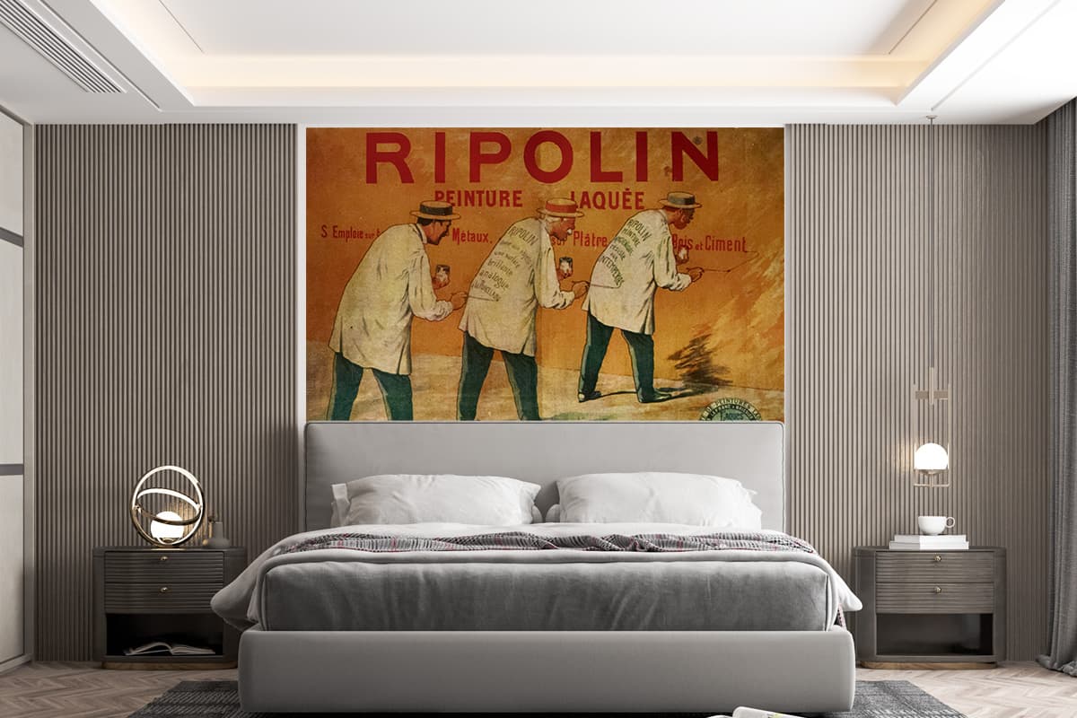 Faites de votre intérieur un espace qui vous ressemble ! Nos papiers peints personnalisés s’adaptent à toutes les pièces : salon, chambre d’enfant, cuisine, couloir, ou même locaux professionnels. Vous pouvez commander votre Papier Peint Panoramique Peinture Publicitaire - Ripolin aux dimensions exactes de votre mur, pour un ajustement parfait sans découpe inutile. Notre service sur mesure vous garantit un résultat propre, net et professionnel.