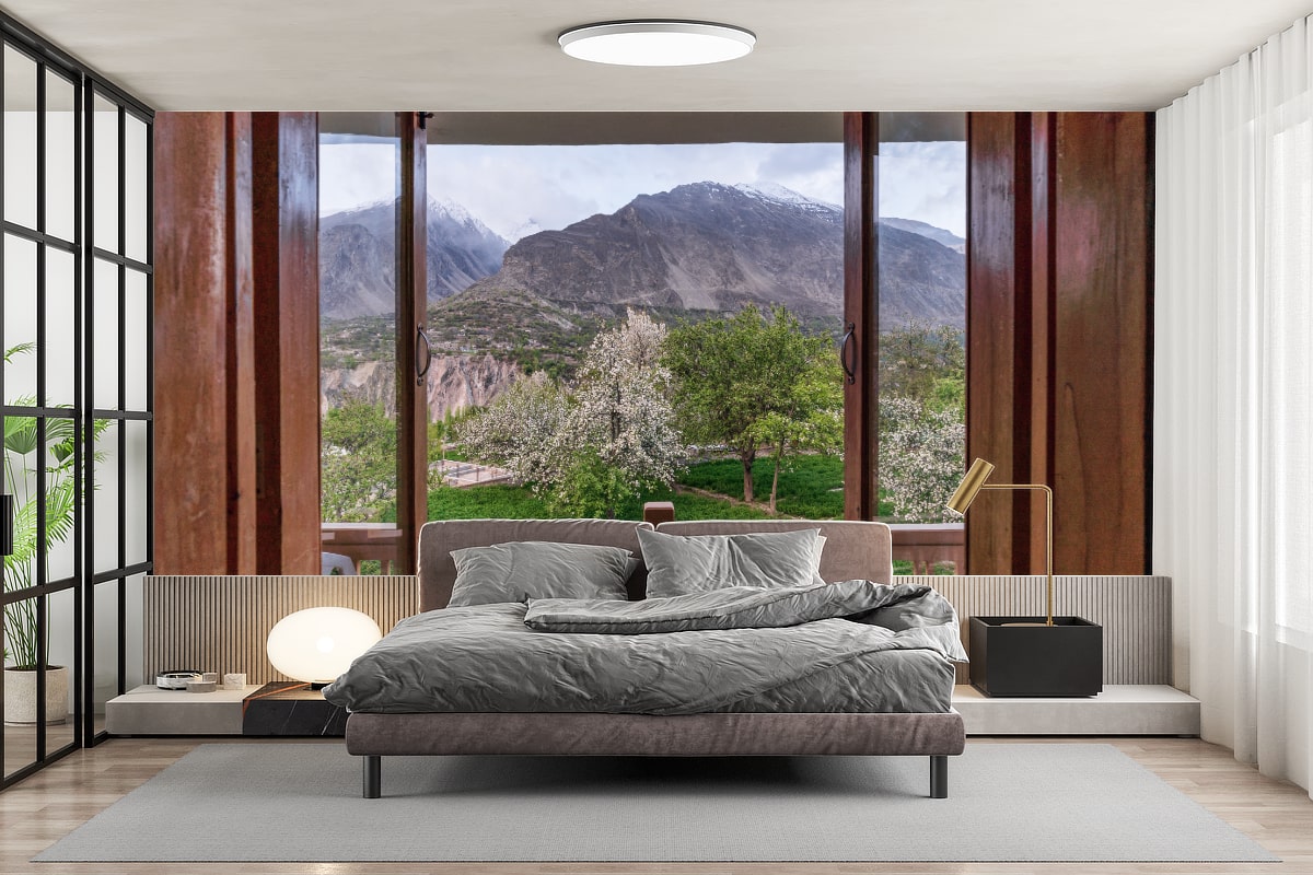 Faites de votre intérieur un espace qui vous ressemble ! Nos papiers peints personnalisés s’adaptent à toutes les pièces : salon, chambre d’enfant, cuisine, couloir, ou même locaux professionnels. Vous pouvez commander votre Papier Peint Panoramique Trompe l'Oeil Montagne balcon aux dimensions exactes de votre mur, pour un ajustement parfait sans découpe inutile. Notre service sur mesure vous garantit un résultat propre, net et professionnel.