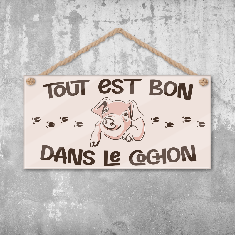 La plaque murale Cochon est facile à installer et peut être placée sur n'importe quelle surface plane. Elle est disponible en différentes tailles pour répondre à vos besoins et à vos goûts.