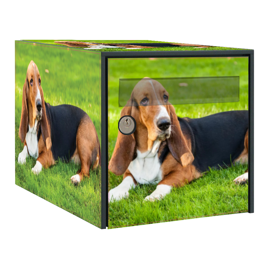 Chaque Sticker boîte aux lettres personnalisé Basset Hound est imprimé à la demande, pour un résultat fidèle à vos attentes. Nous réalisons des modèles exclusifs, humoristiques ou design, adaptés à tous les goûts : animaux, nature, vintage, enfant, coloré, graphique, etc.