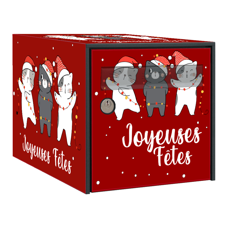 Marre des boîtes aux lettres ternes et identiques ? Distinguez-vous avec un Sticker boîte aux lettres personnalisé Chats Noël - facile à retirer original, créé spécialement pour vous. Choisissez votre modèle préféré et personnalisez-le selon vos envies grâce à notre configurateur simple et rapide. En quelques clics, créez une décoration adhésive 100 % sur mesure :