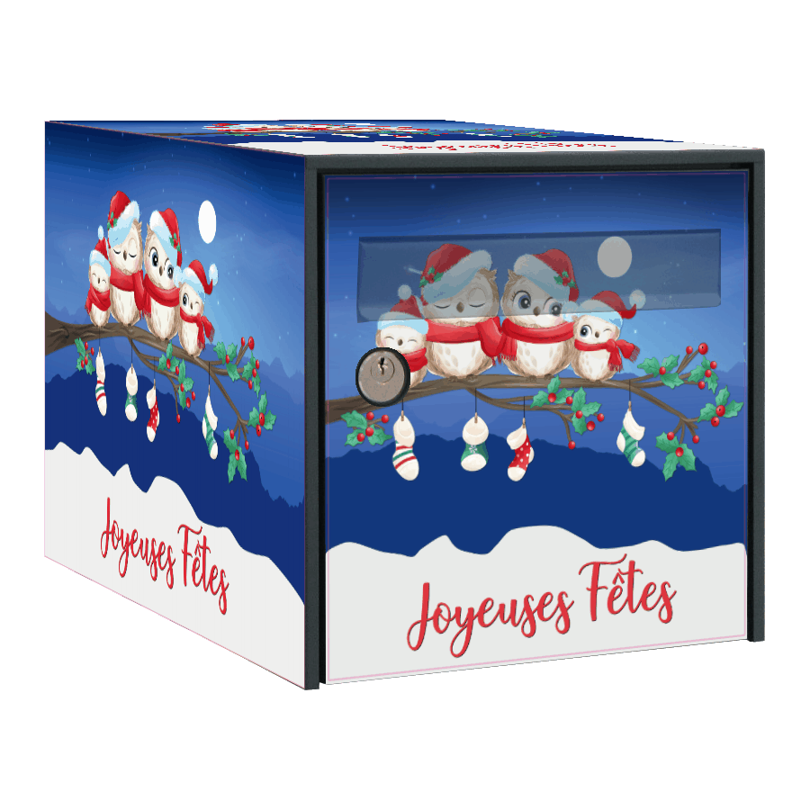 Sticker boîte aux lettres personnalisé Chouettes de Noël - facile à retirer – une déco unique fabriquée en France